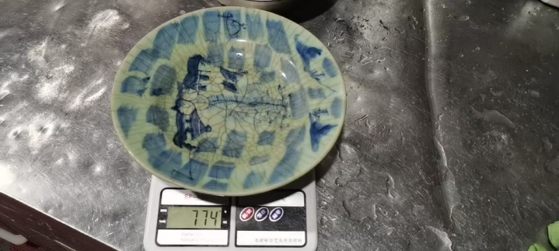 清代哥釉青花人物纹盘
