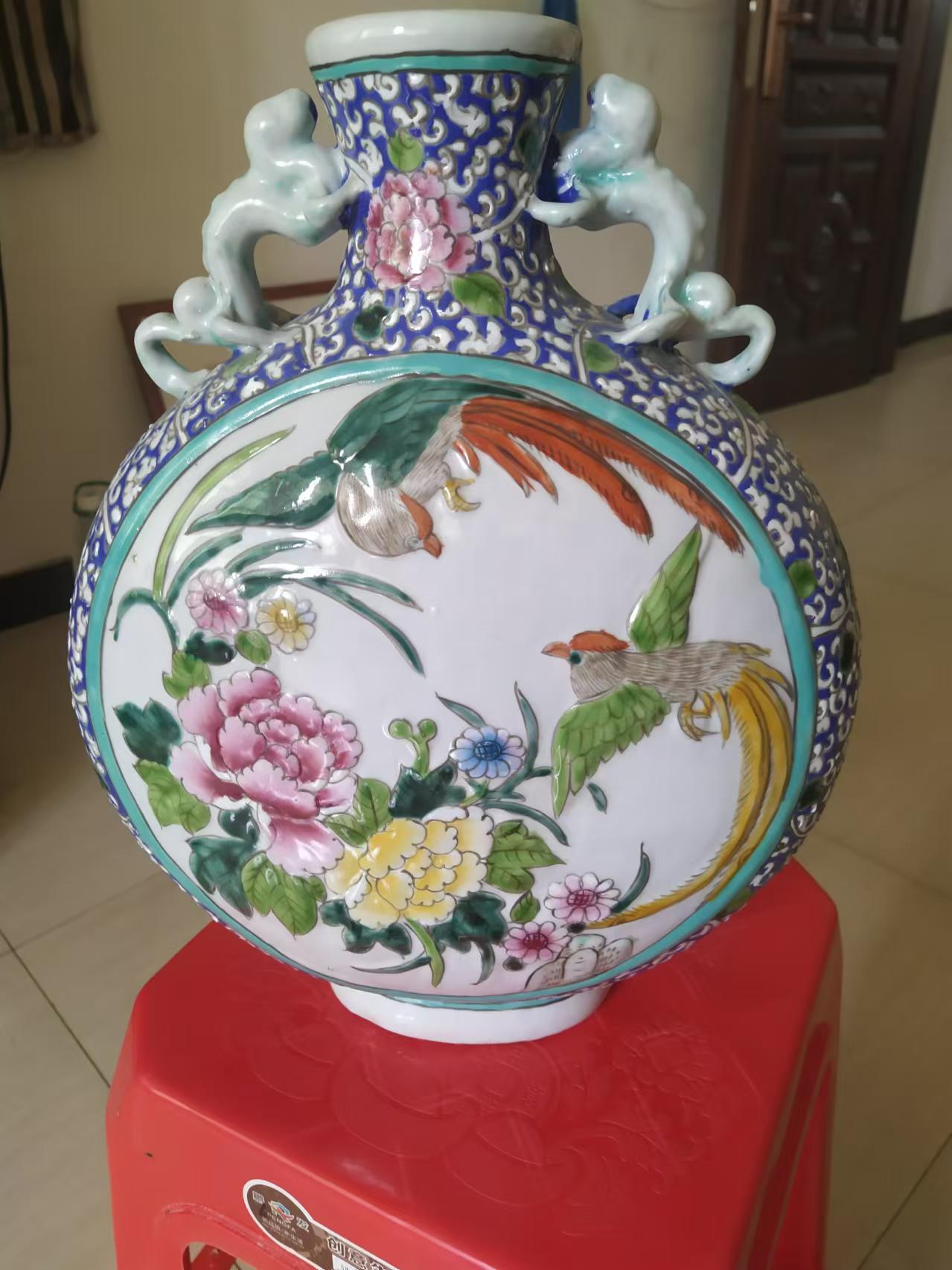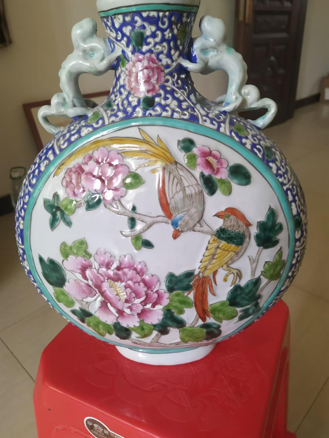 清光绪花鸟扁瓶