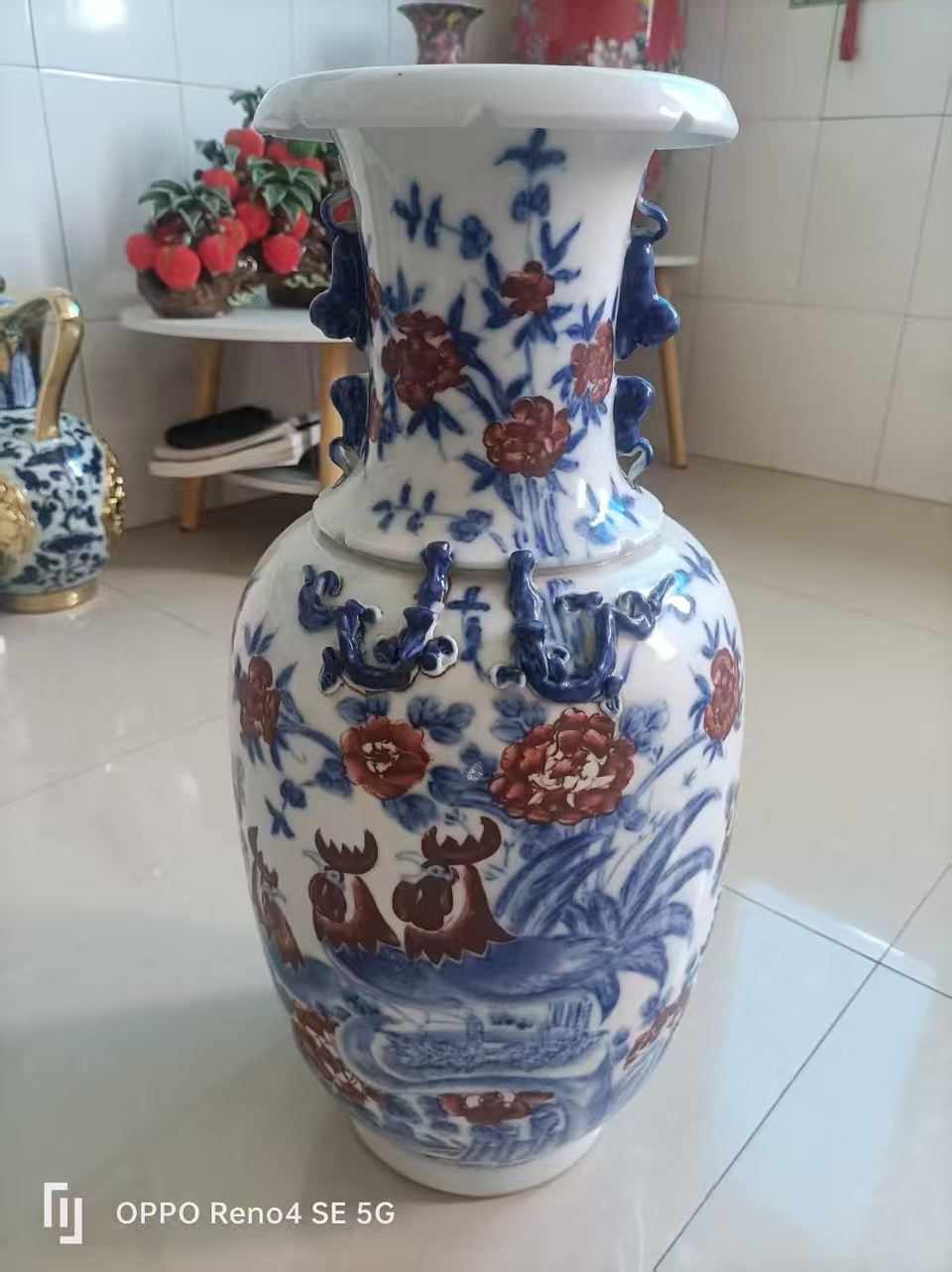 大清康熙青花釉里红鸡纹偿瓶
