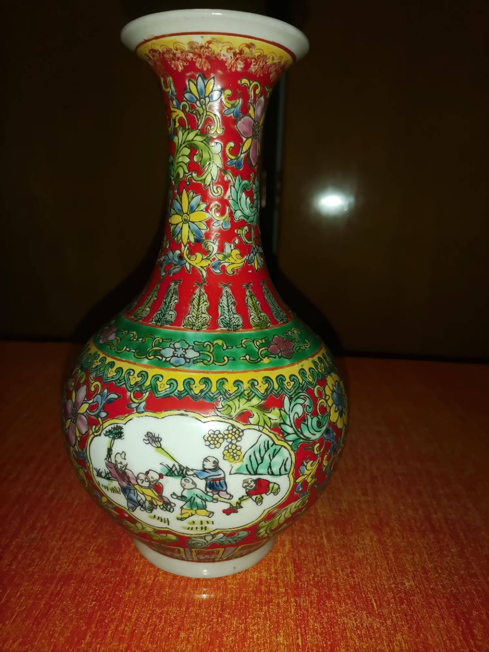 粉彩开光婴戏纹赏瓶