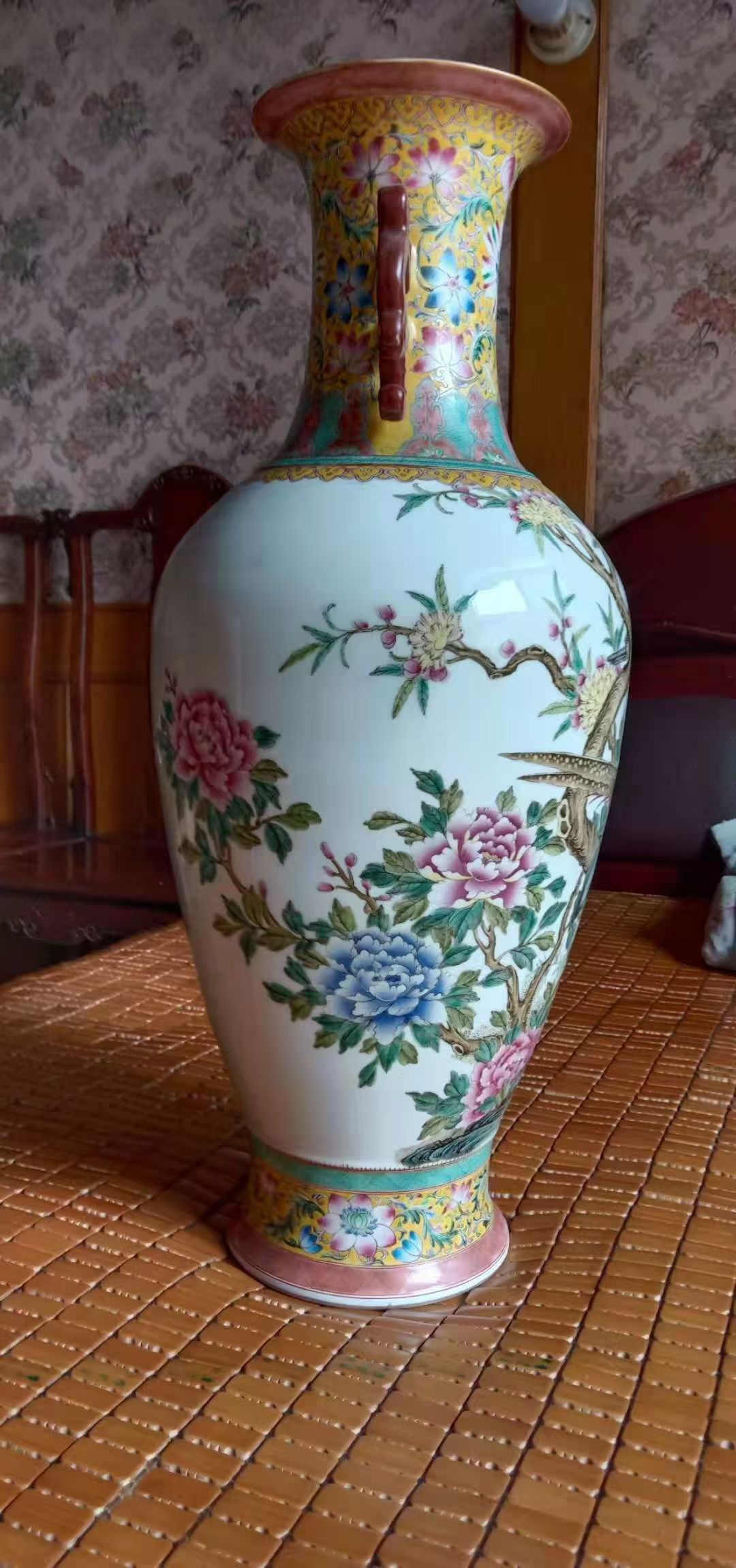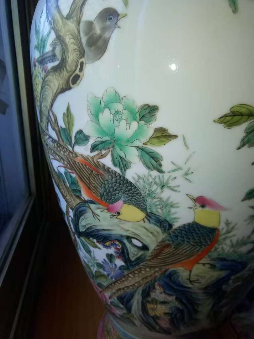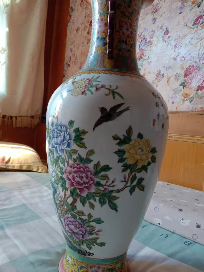 清乾隆粉彩锦鸡牡丹詩文赏瓶