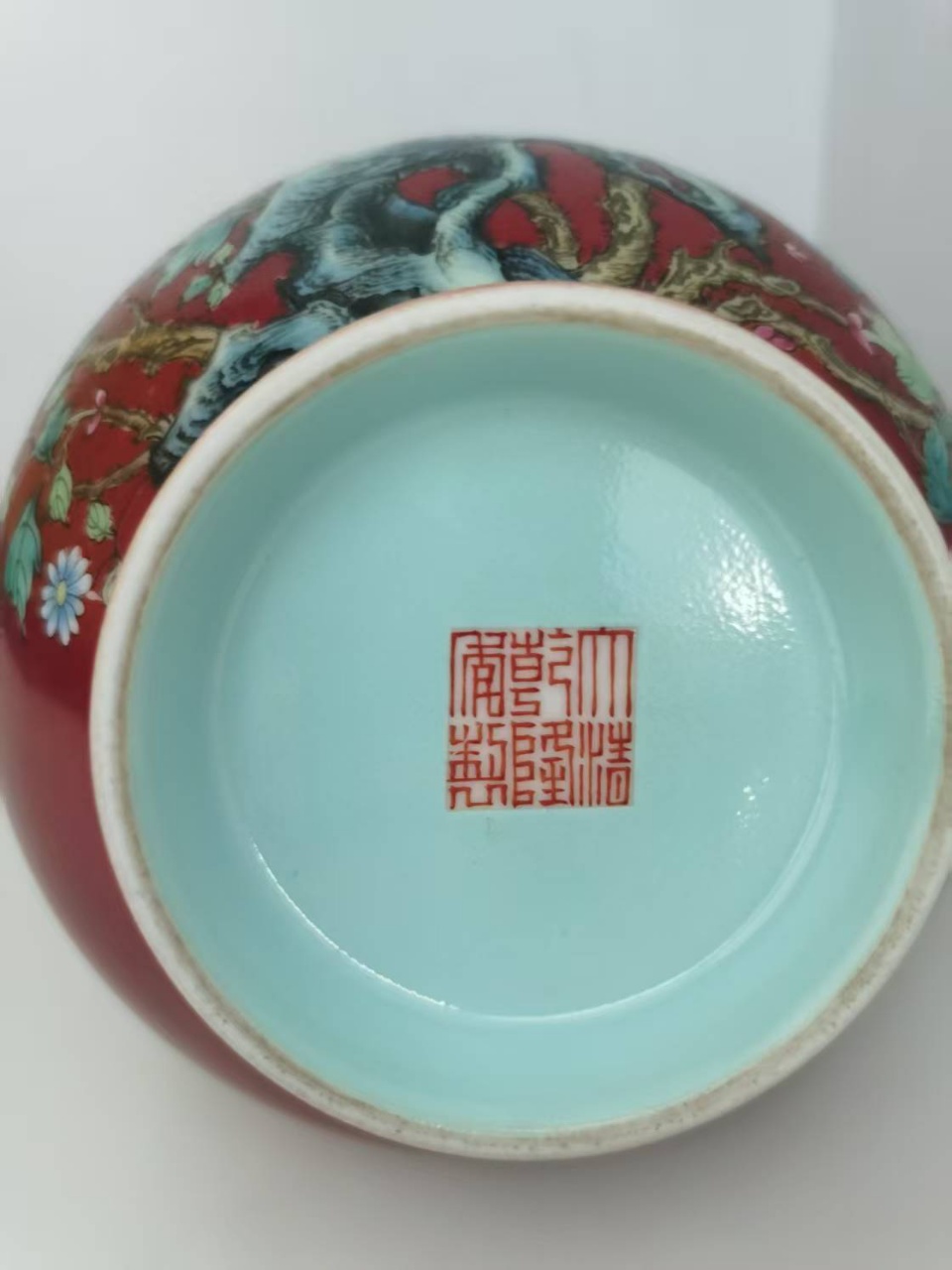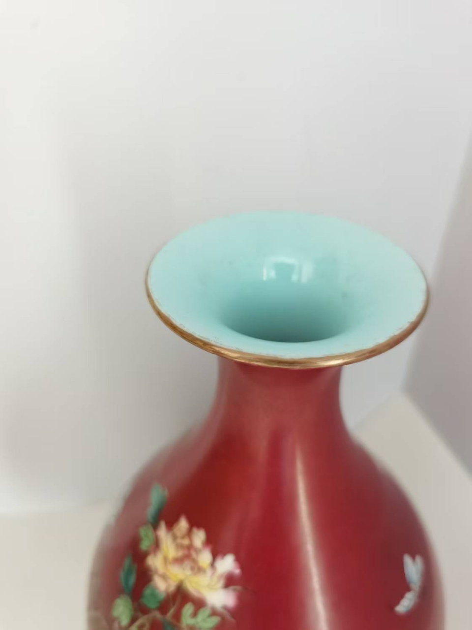 胭脂红地粉彩花卉蝴蝶纹玉壶春瓶