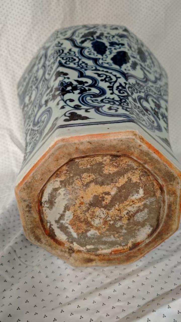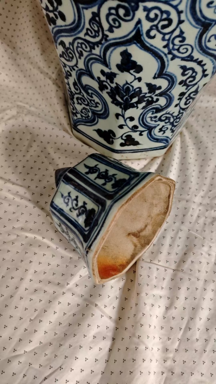 青花凤凰虫草纹八棱梅瓶(带盖)