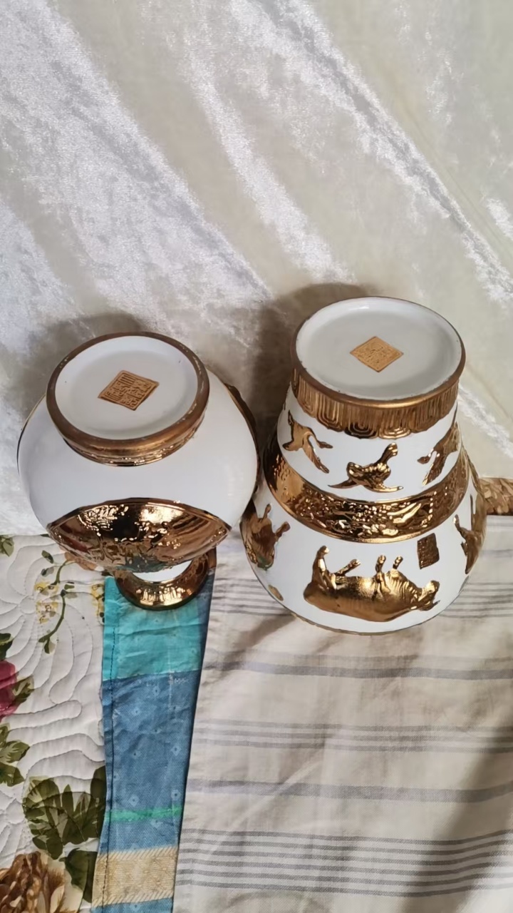 乾隆款白瓷包金五牛图梅瓶,寿星尊