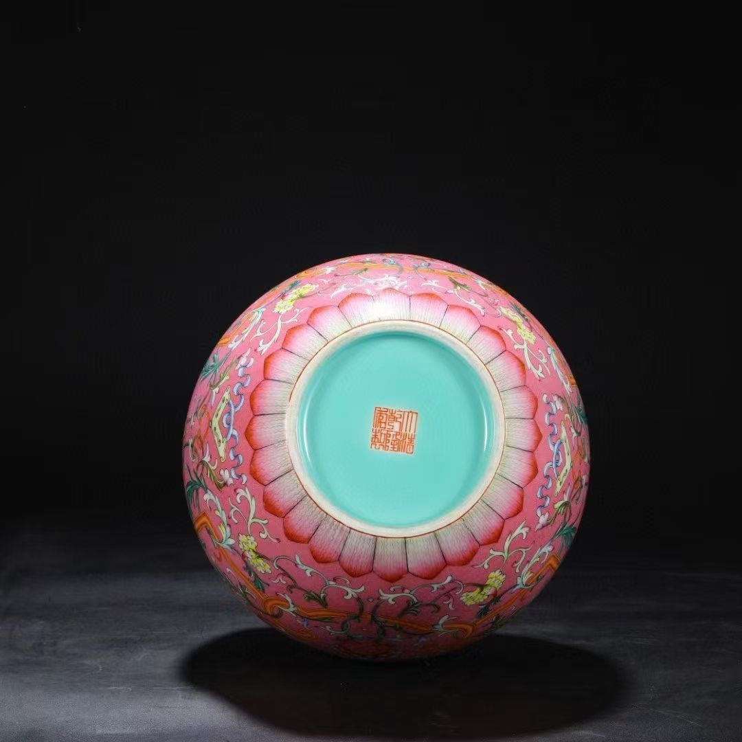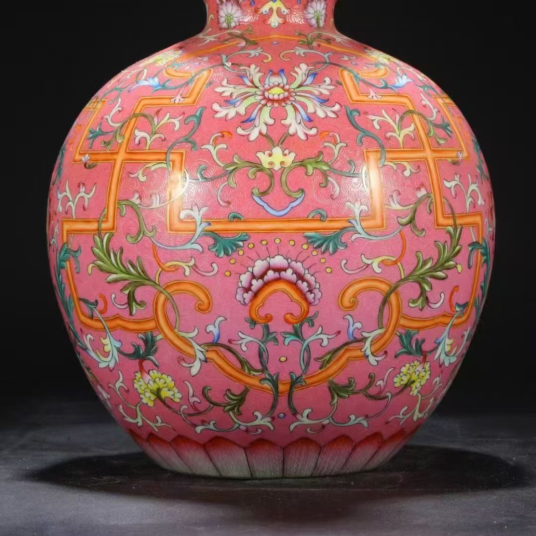 清乾隆粉地粉彩万寿缠枝花卉葫芦瓶
