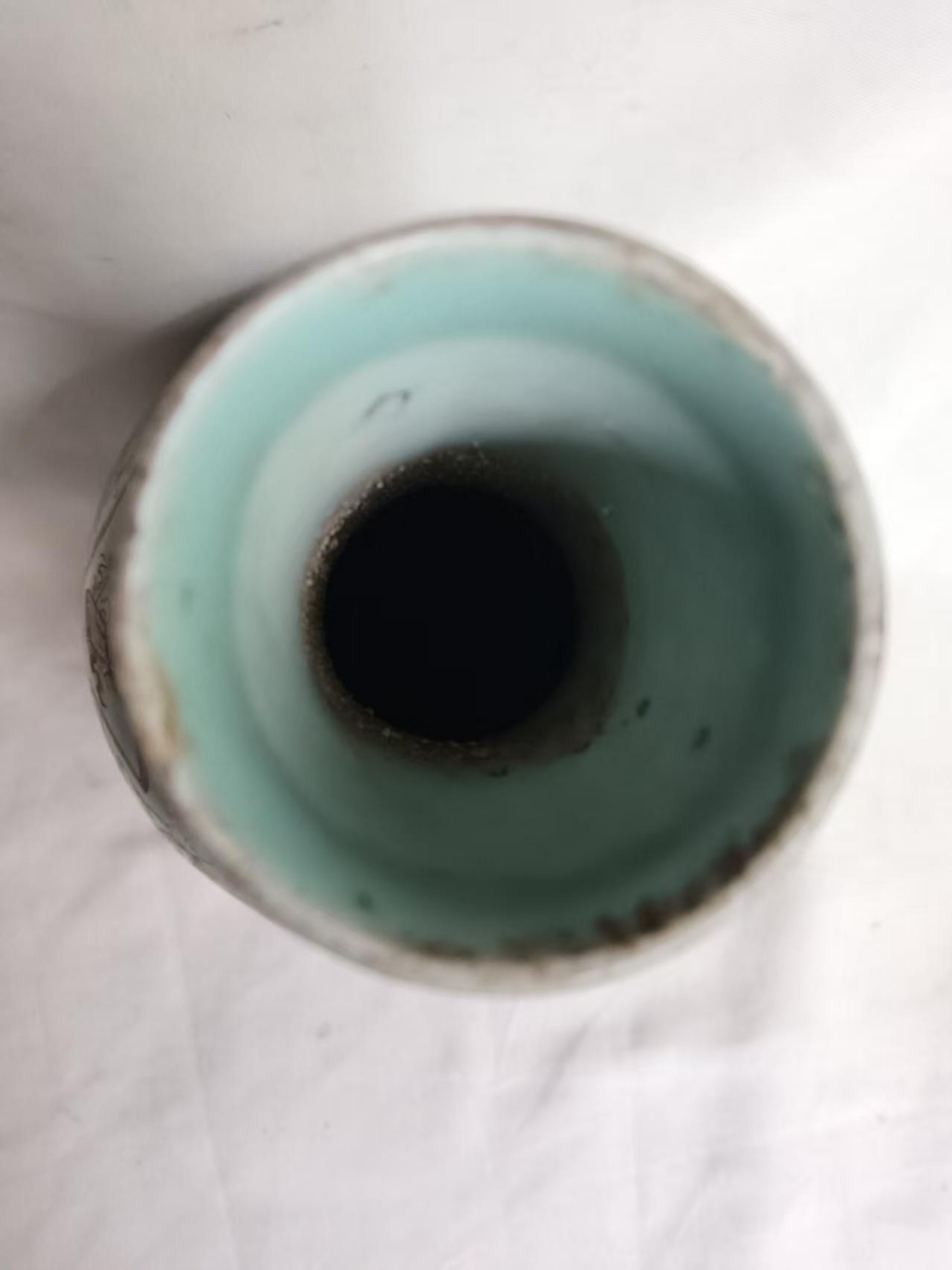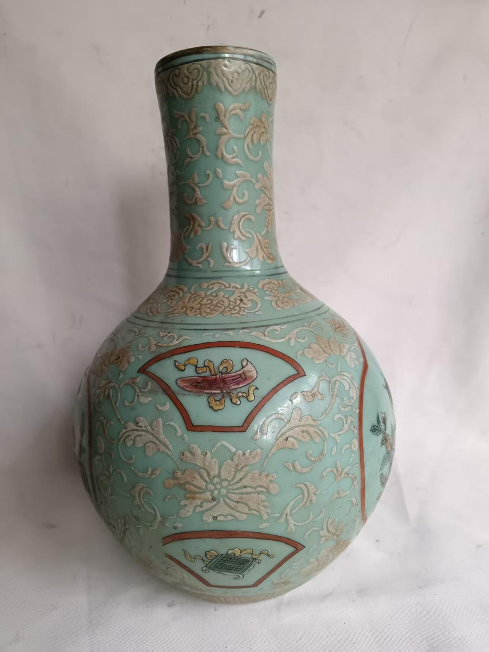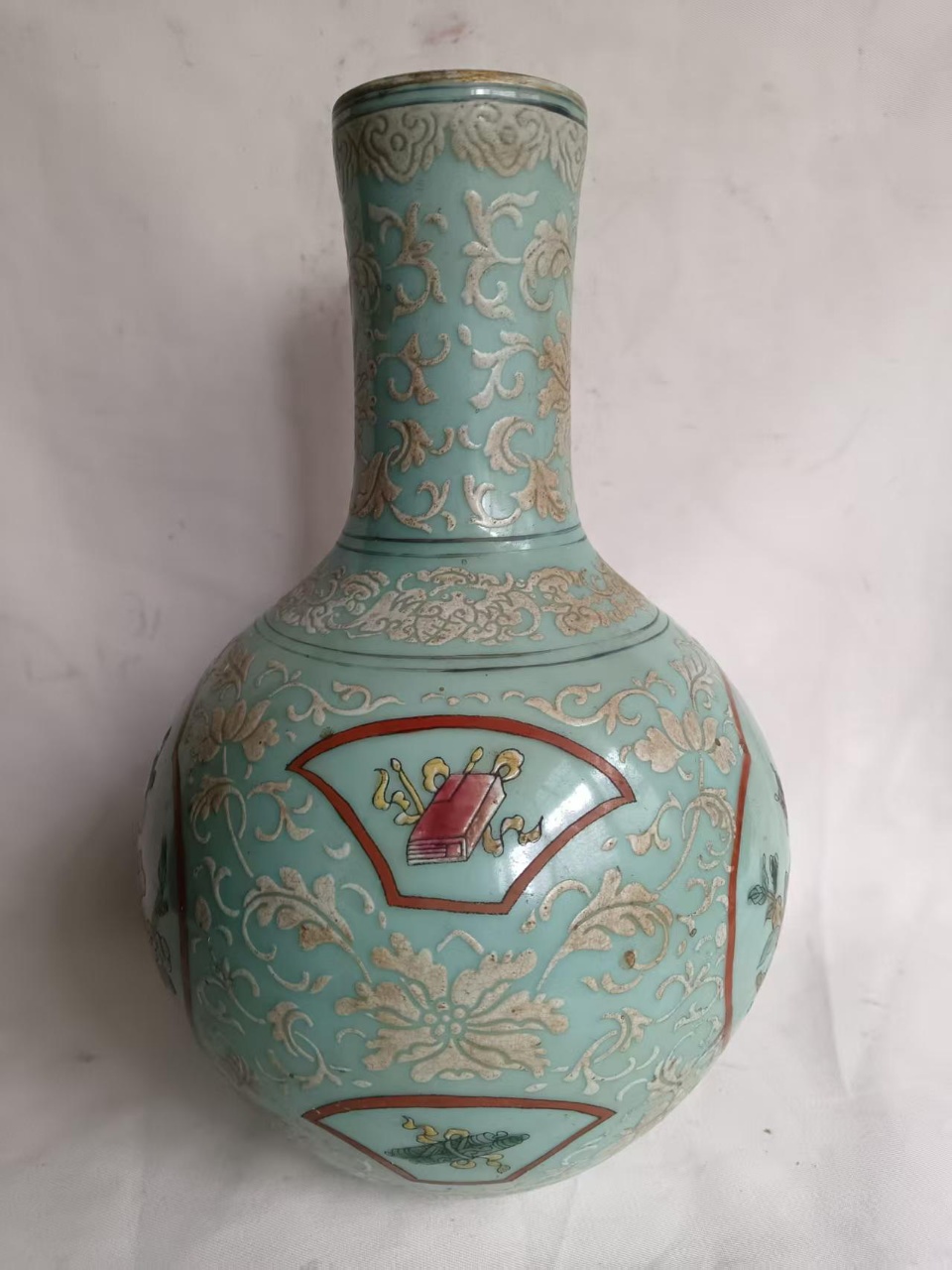 淡青釉开窗花卉天球瓶