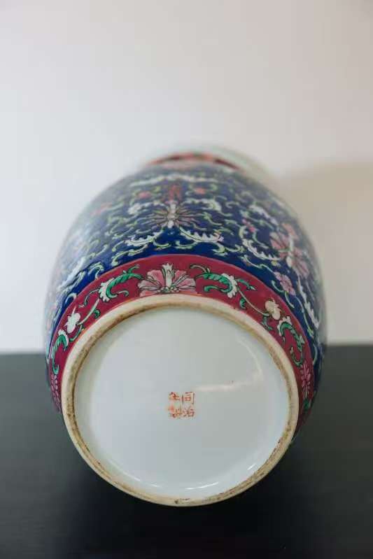 宝石蓝釉缠枝花卉珐琅彩棒槌瓶