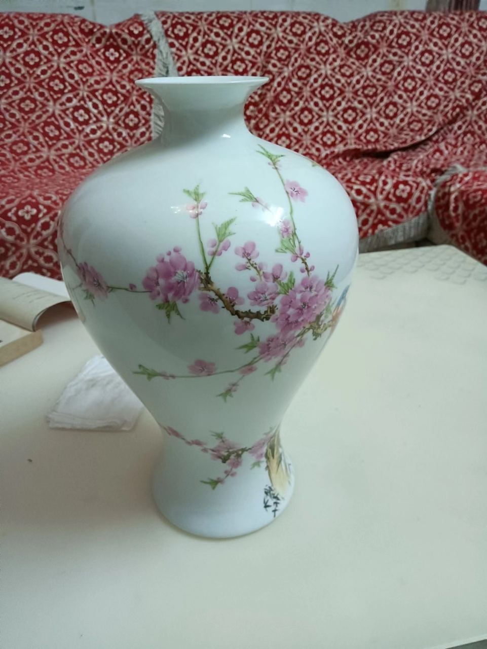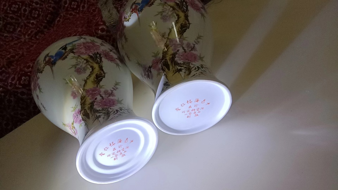 7501水点桃花系列瓷器一对