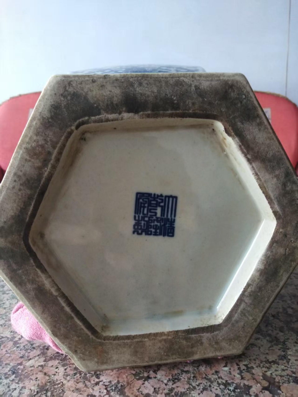 青花缠枝纹六方赏瓶