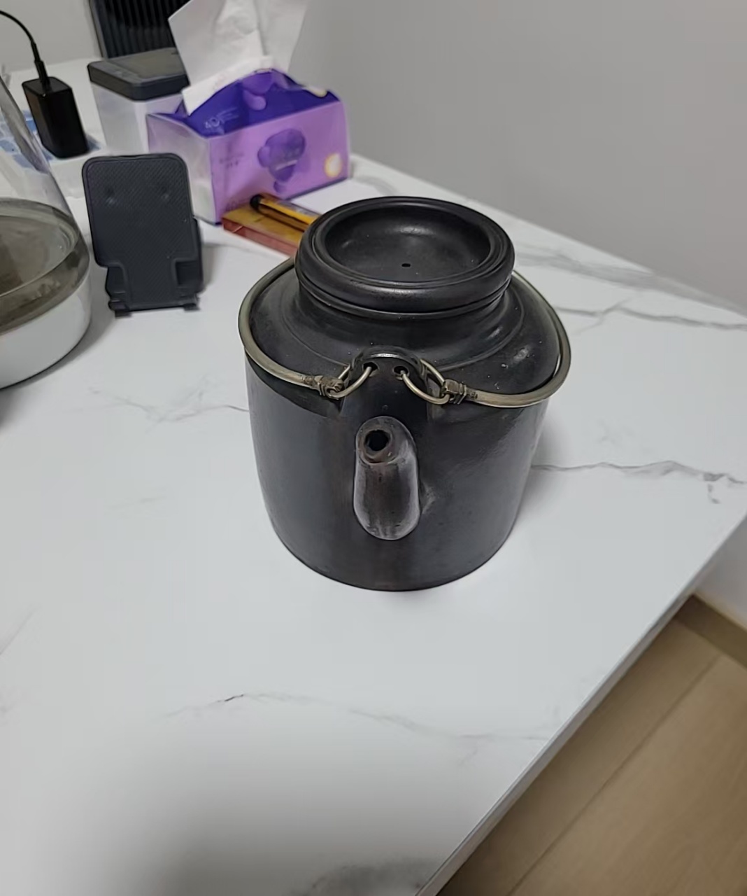 紫砂黑泥提梁壶