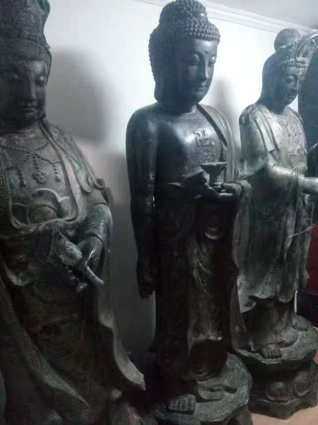 大明宣德年制铜胎描金,西方三圣佛