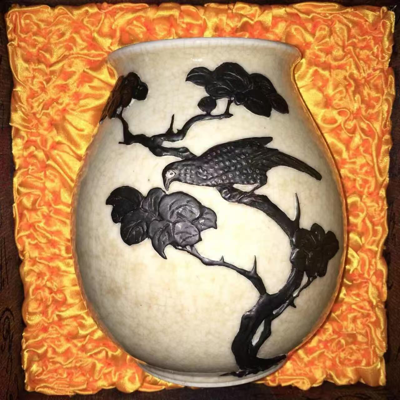 白釉黑彩花鸟纹尊