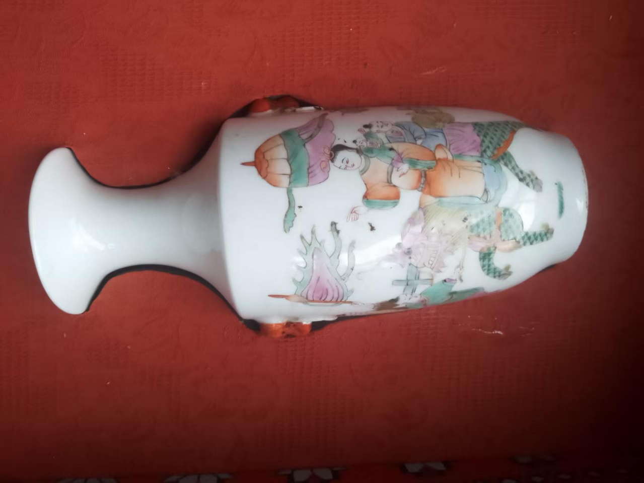 粉彩人物麒麟送子虎环耳赏瓶