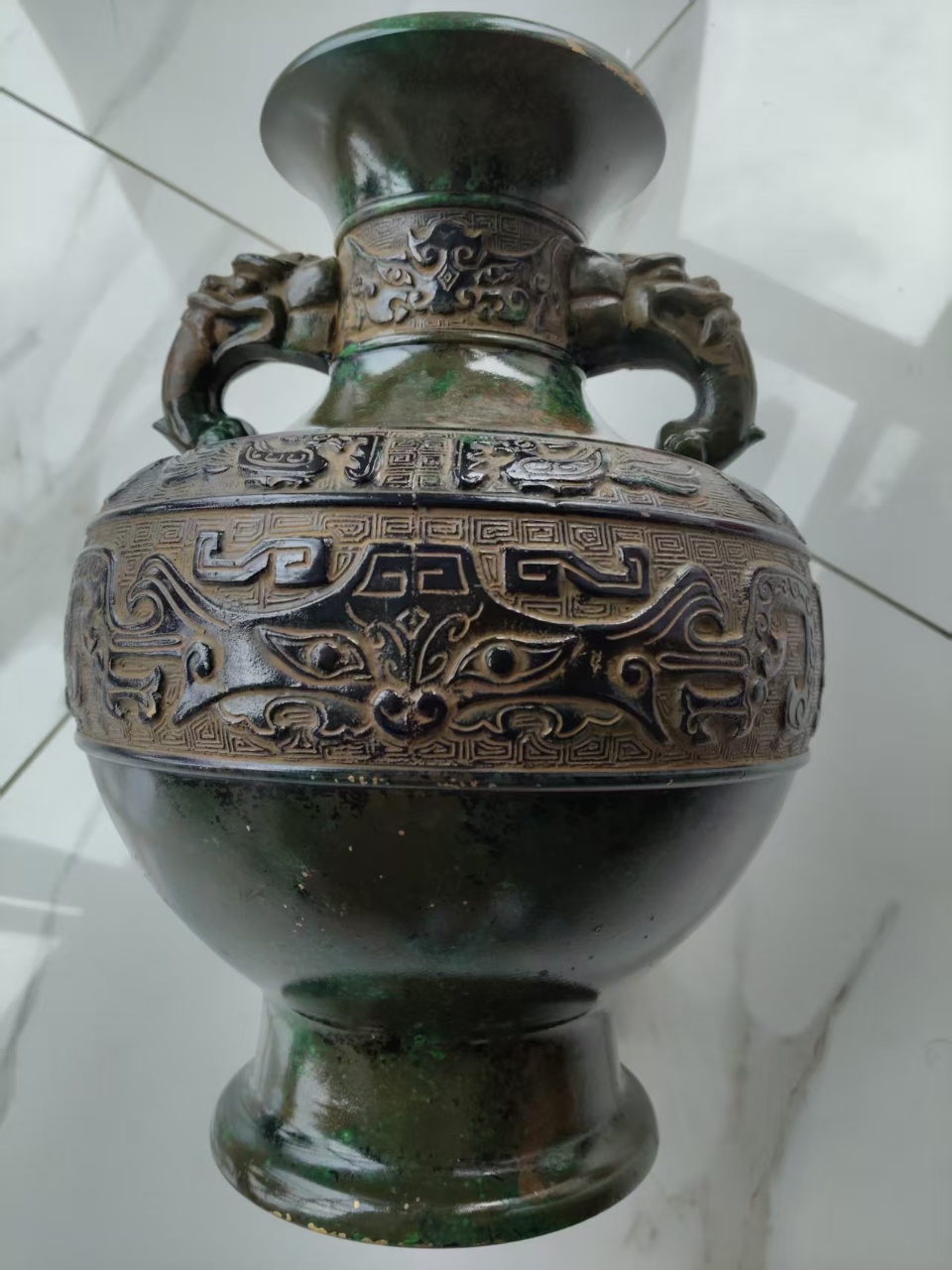 饕餮纹双耳铜瓶
