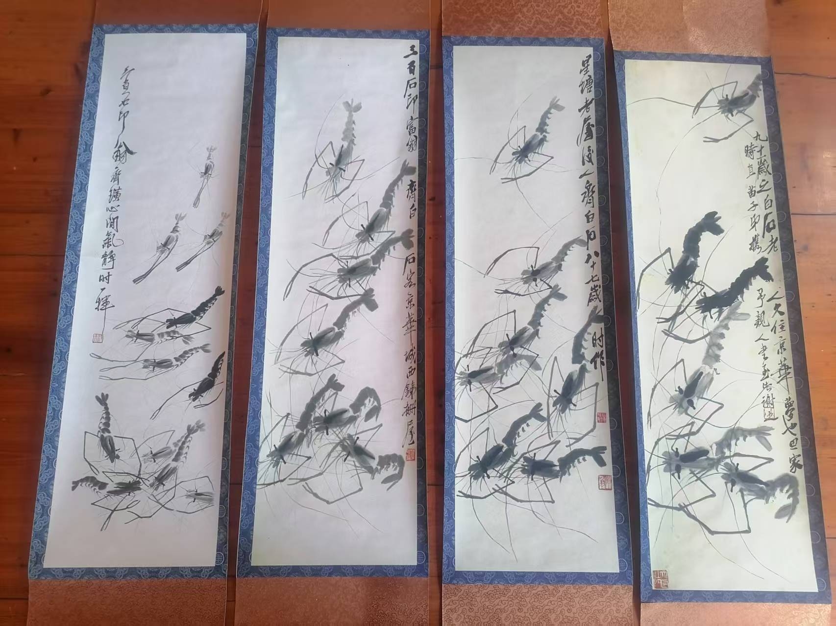 齐白石虾蟹四条屏
