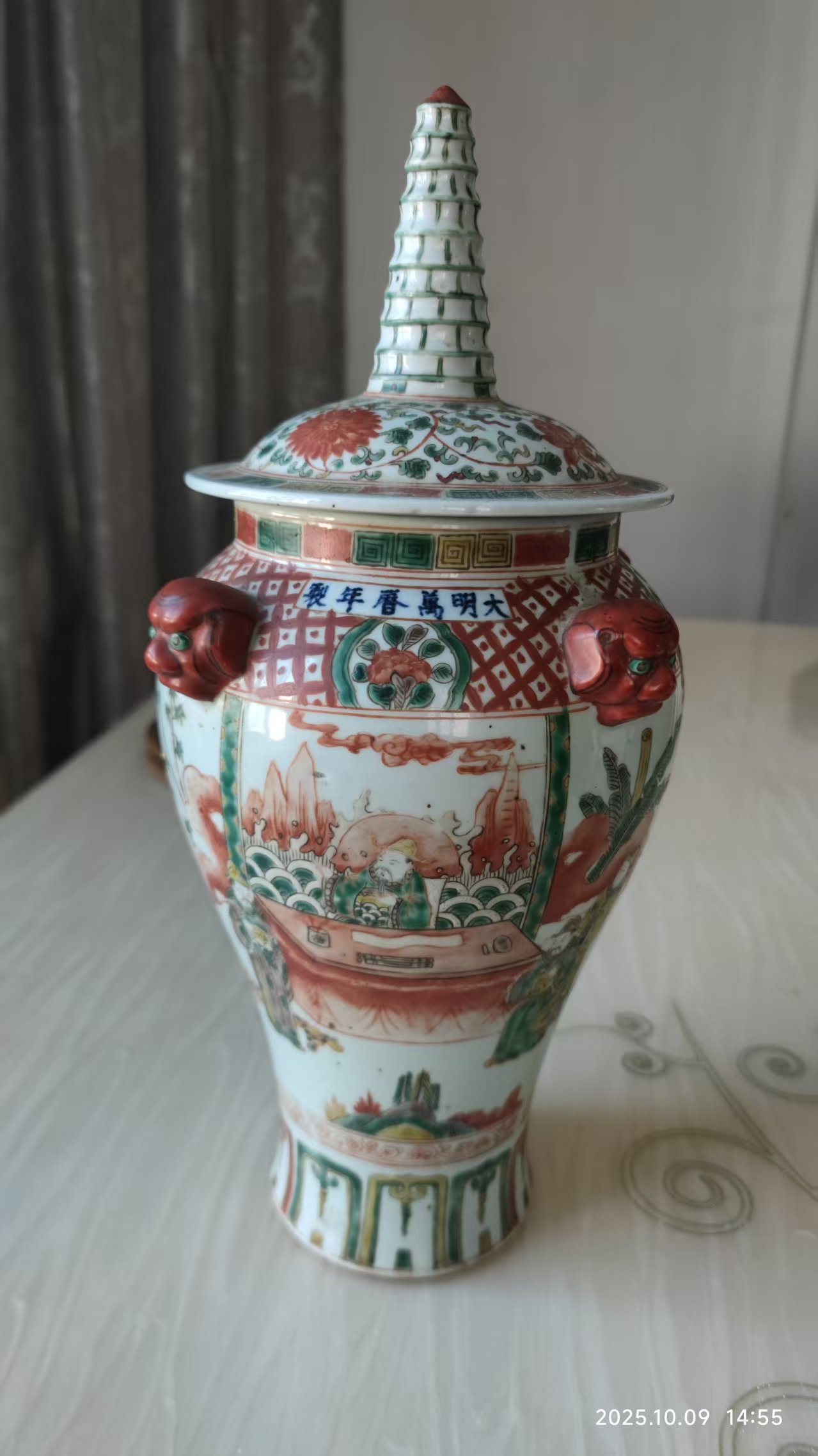 大明万历年制五彩人物将军罐