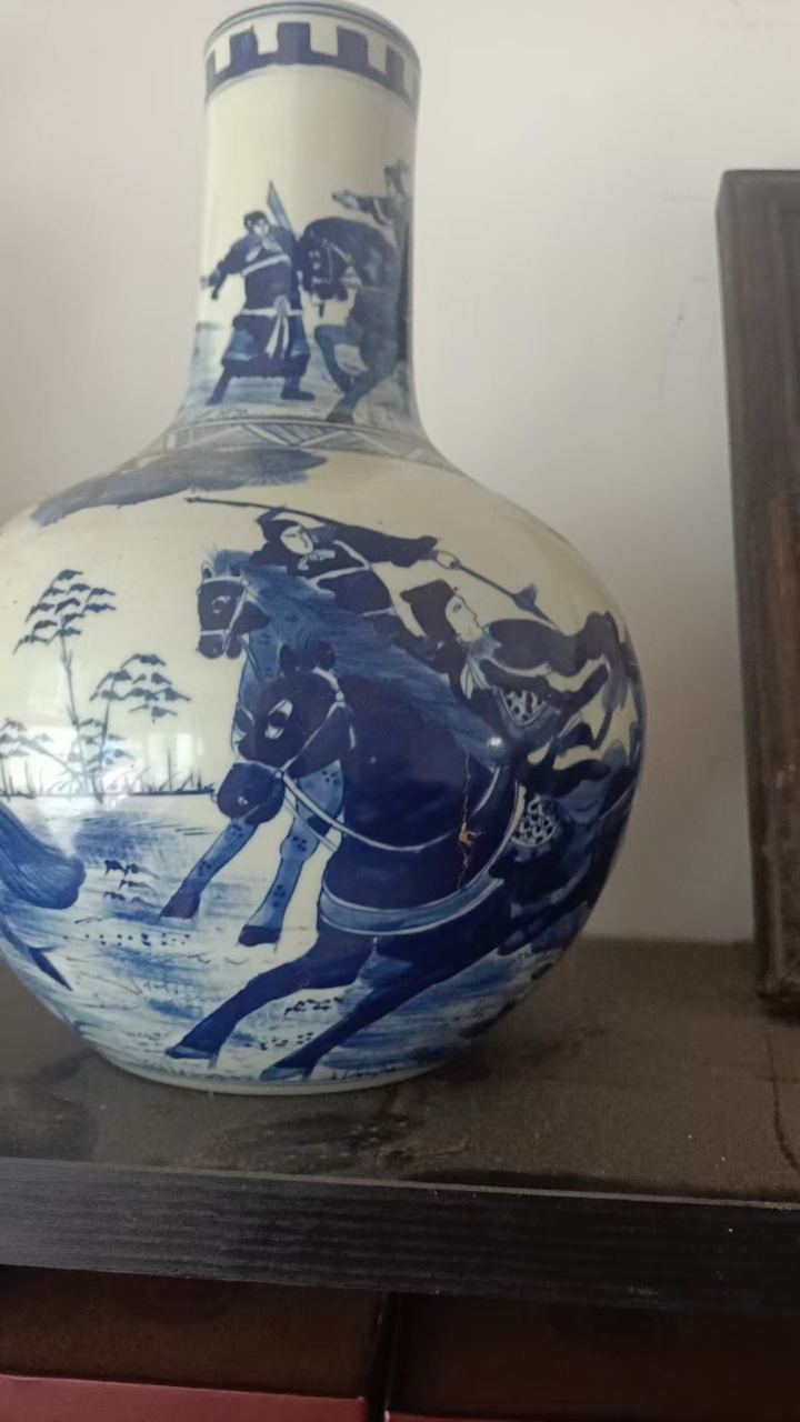 清代刀马人物天球瓶