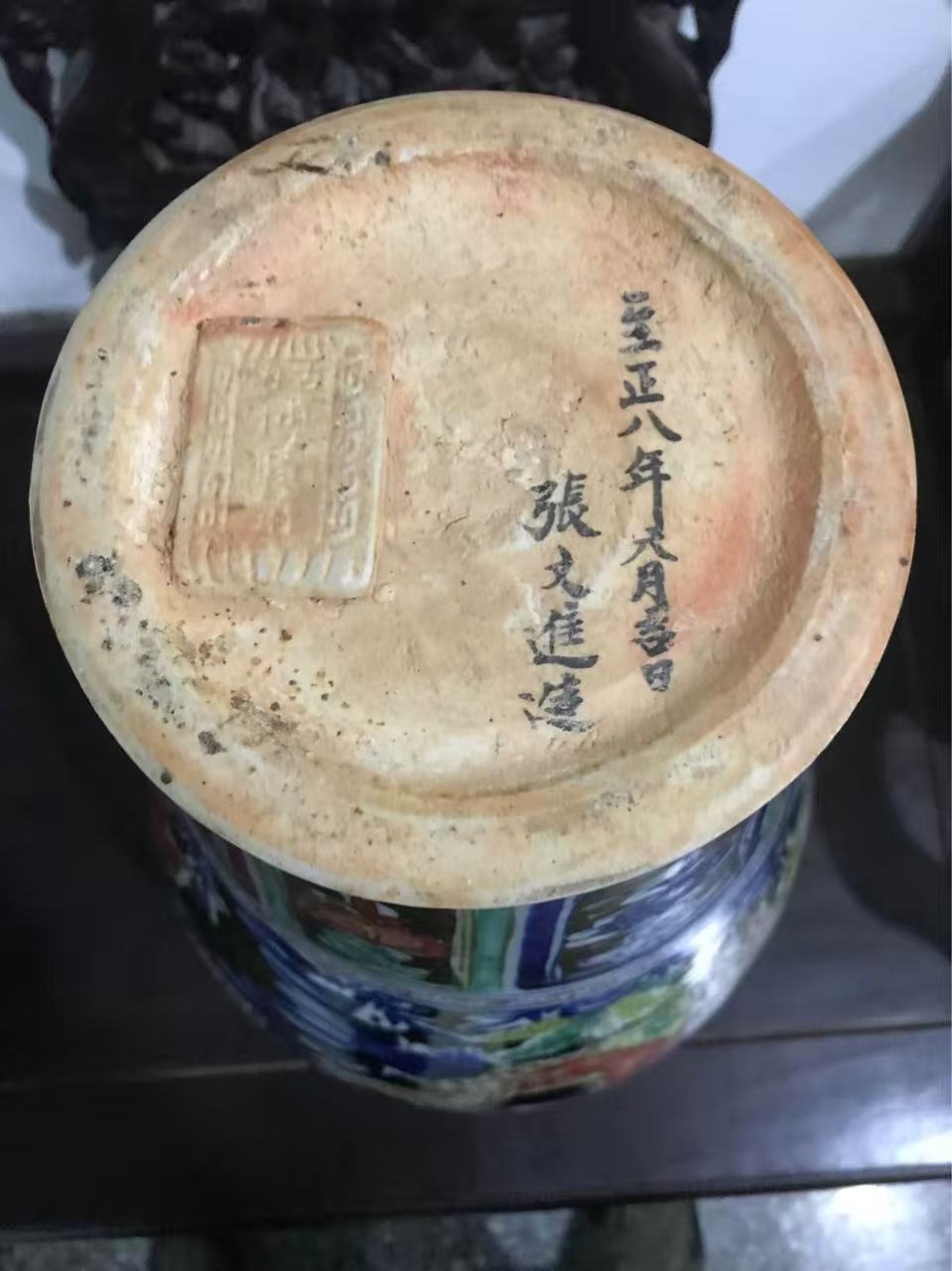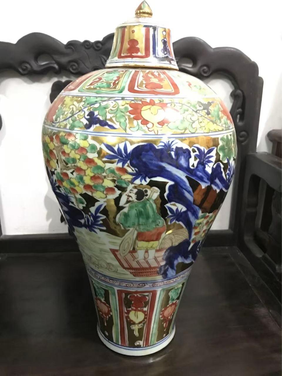 金地斗彩“萧何月下追韩信”人物纹梅瓶