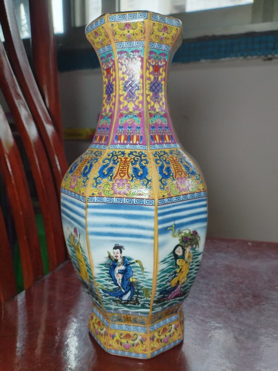 乾隆御制珐琅八仙人物八方瓶高26.2cm口径7.8cm最大肚径13cm底径9.3cm