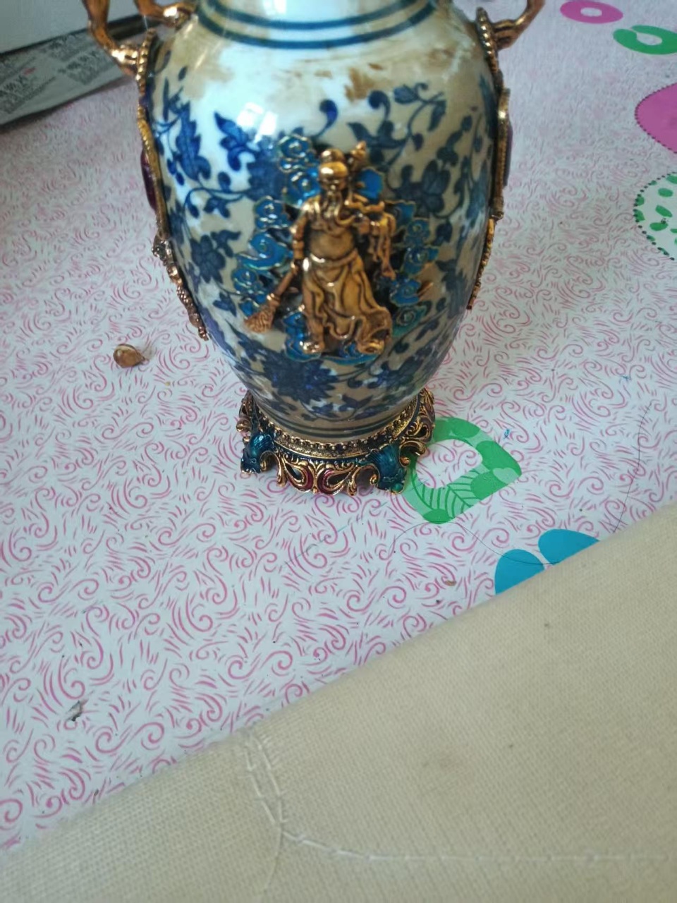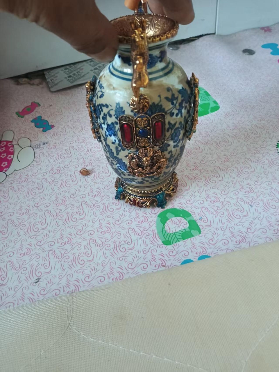 鎏金錾刻青花瓷瓶