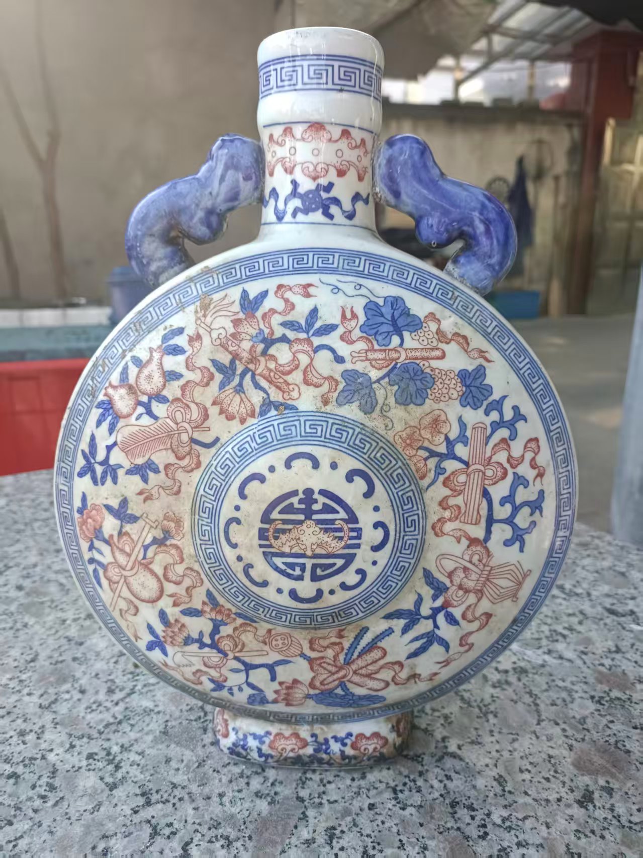 乾隆六字款 青花釉里红包月瓶33.5Ⅹ25