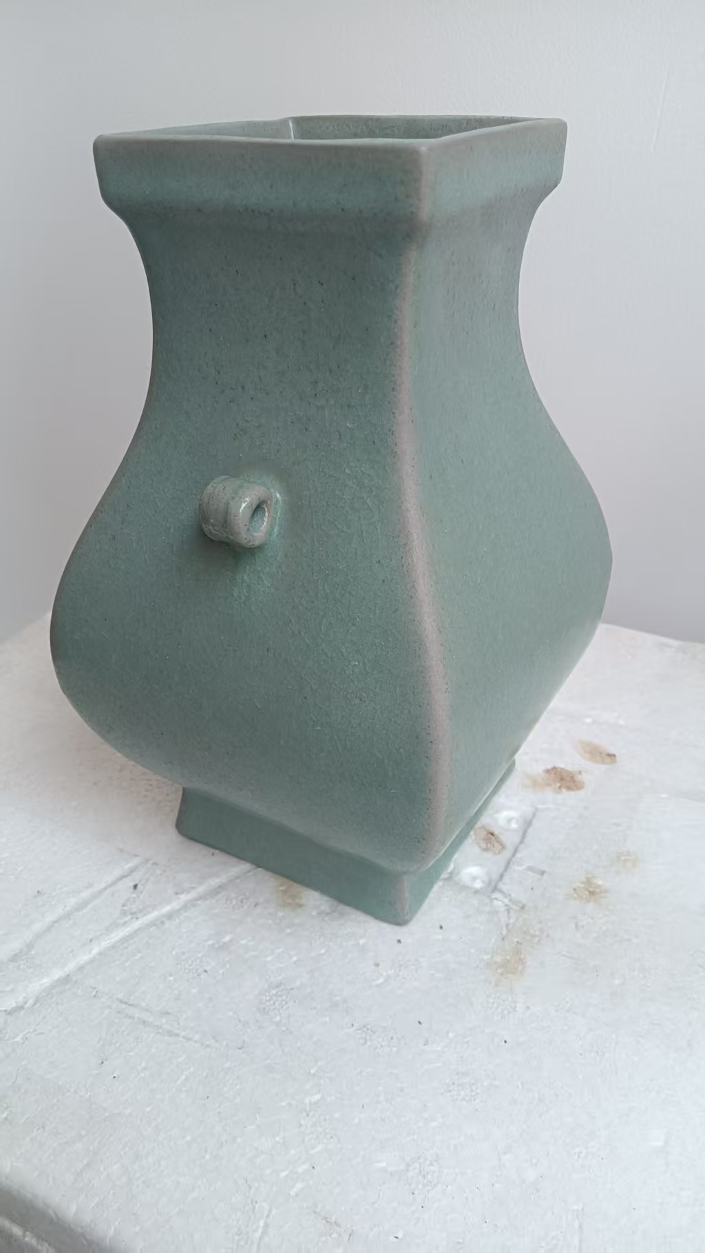 宋汝窑仿青铜方尊高17.5厘米
