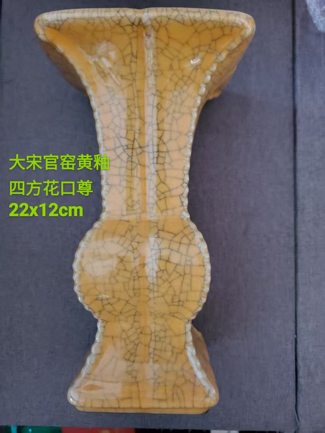 大宋官窑款黄釉四方花口瓷尊