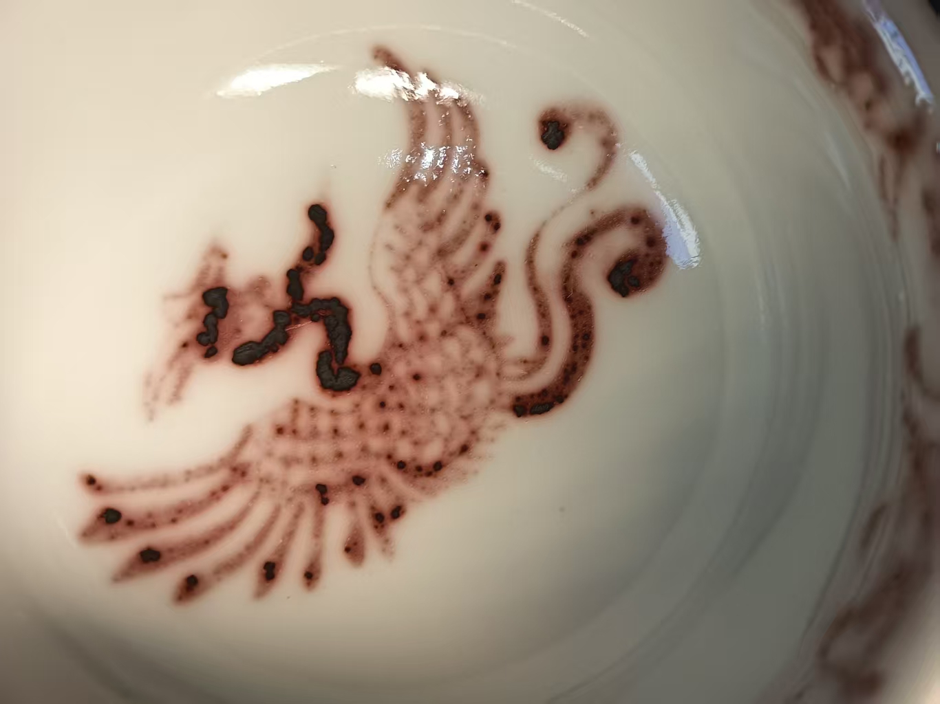 元末明初釉里红凤凰缠枝花卉纹高足杯
