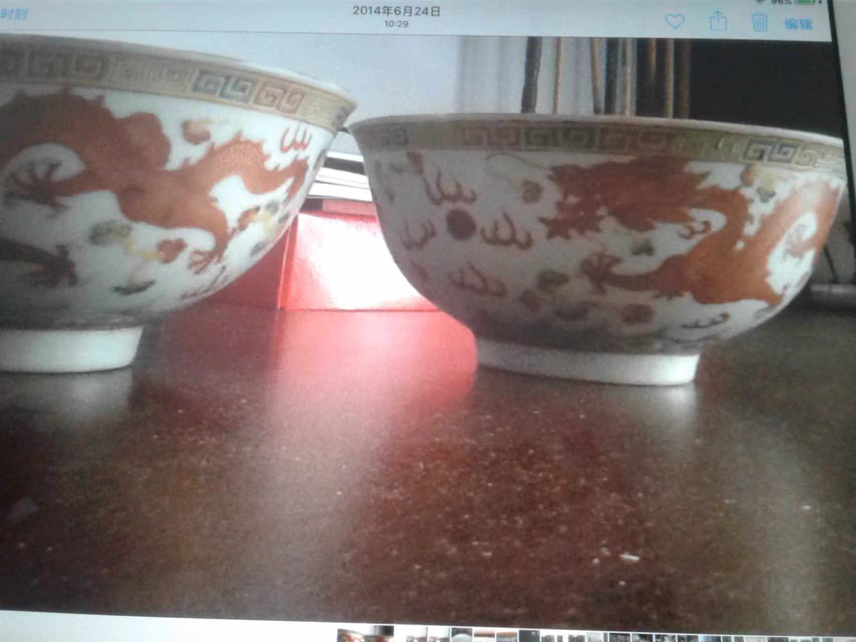 藏品清代矾红龙纹碗一对