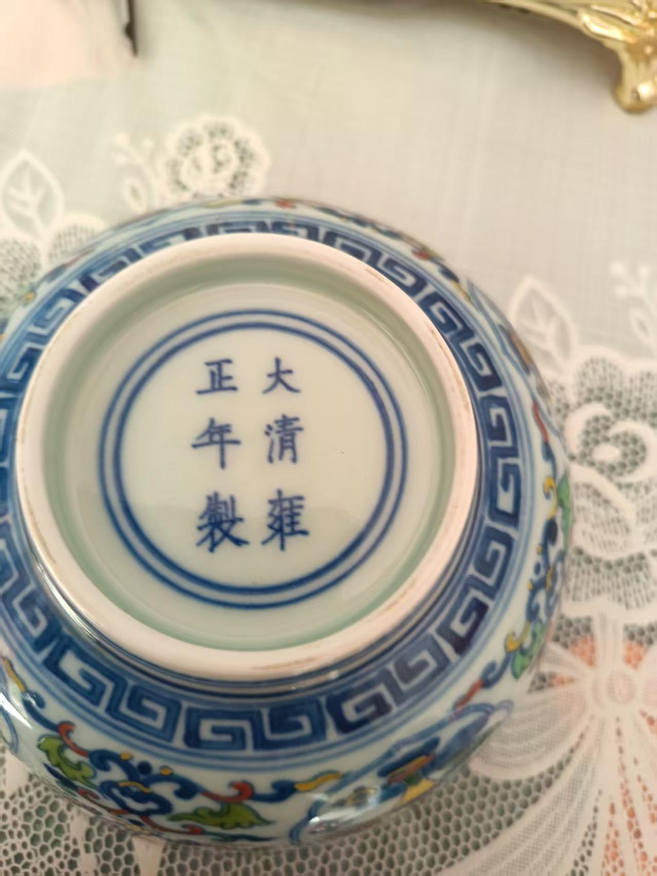 大清雍正缠枝连纹碗一对