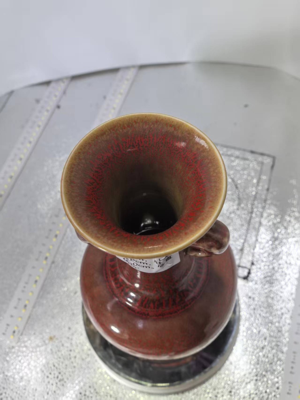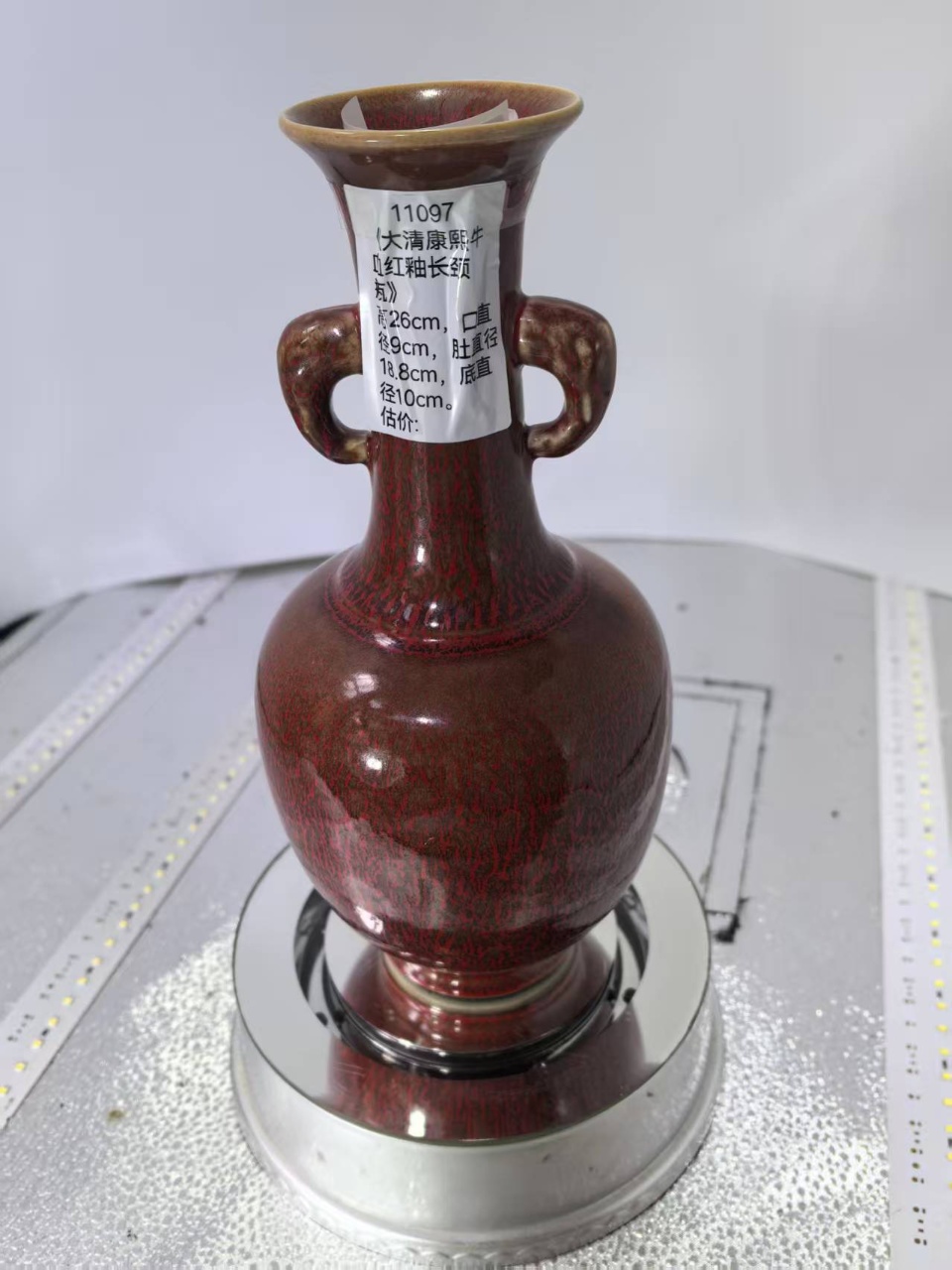 大清康熙牛血红双耳长胫瓶