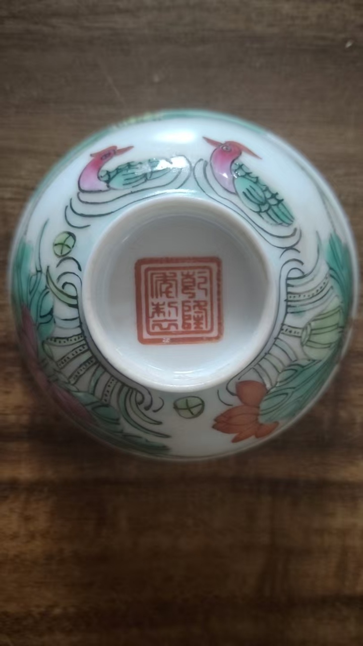 清代乾隆粉彩荷花鸳鸯纹小茶圆