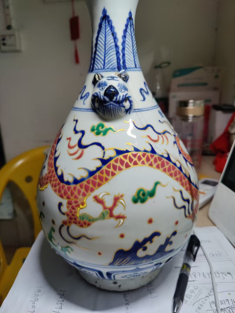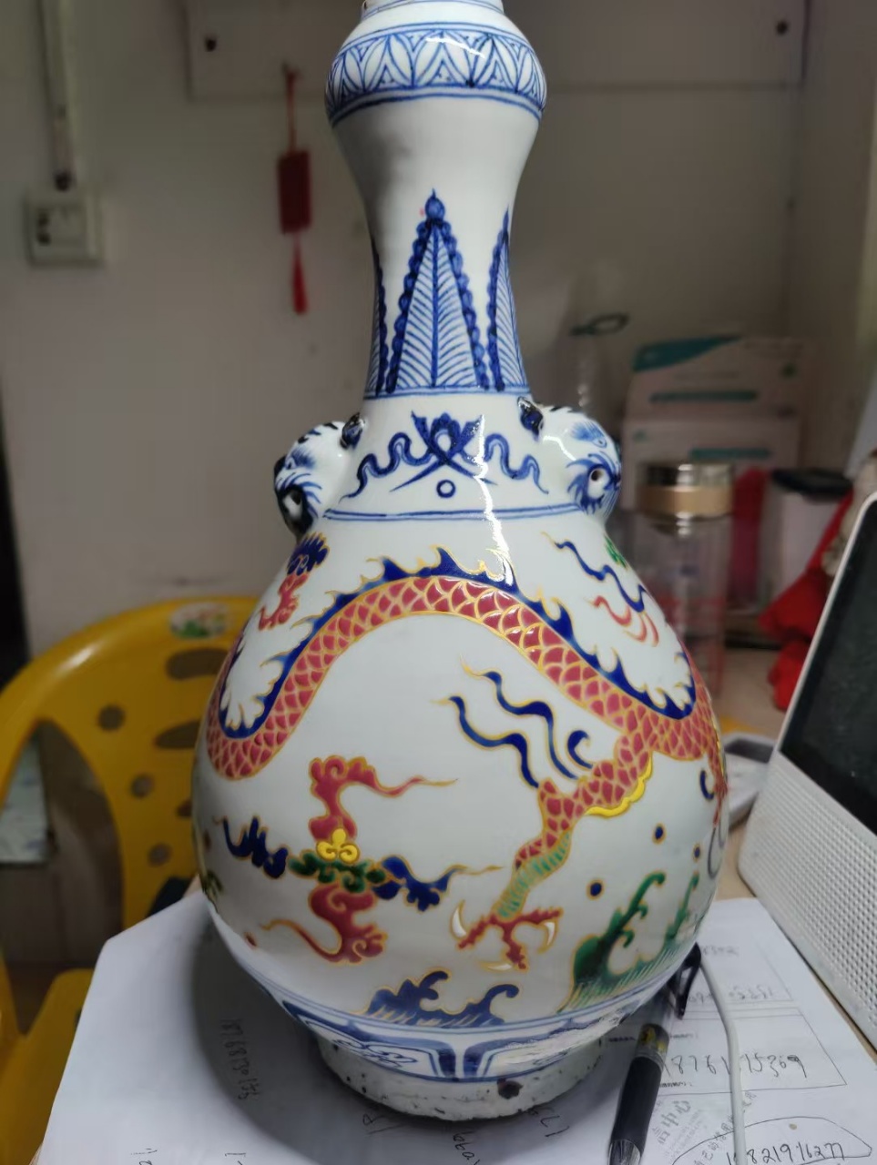 珐华彩蒜头瓶