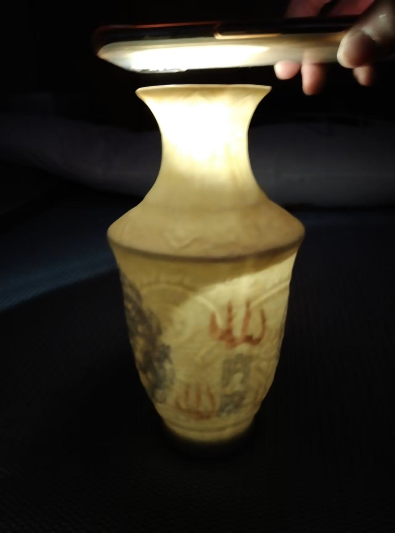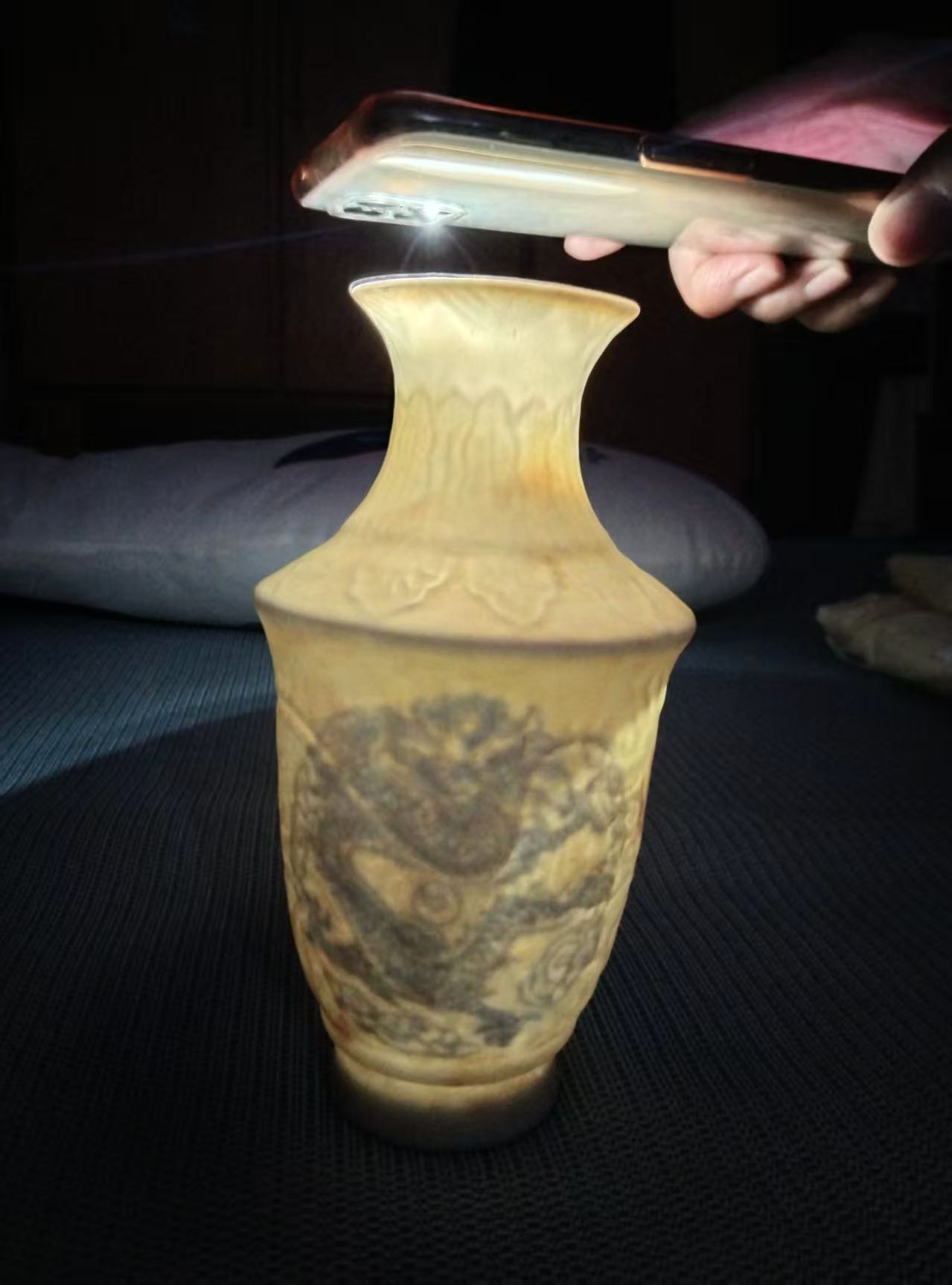 甜白釉暗刻龙纹内画龙凤内府橄榄瓶