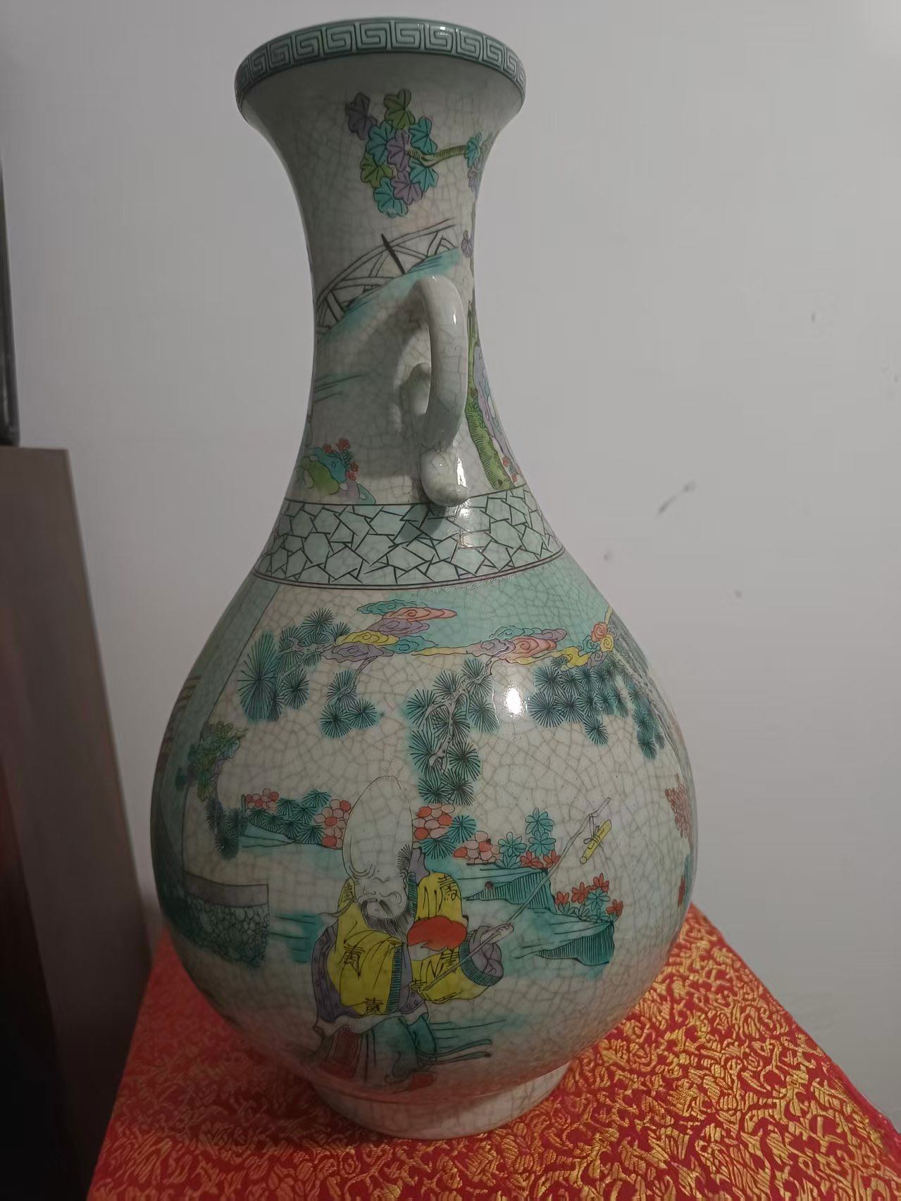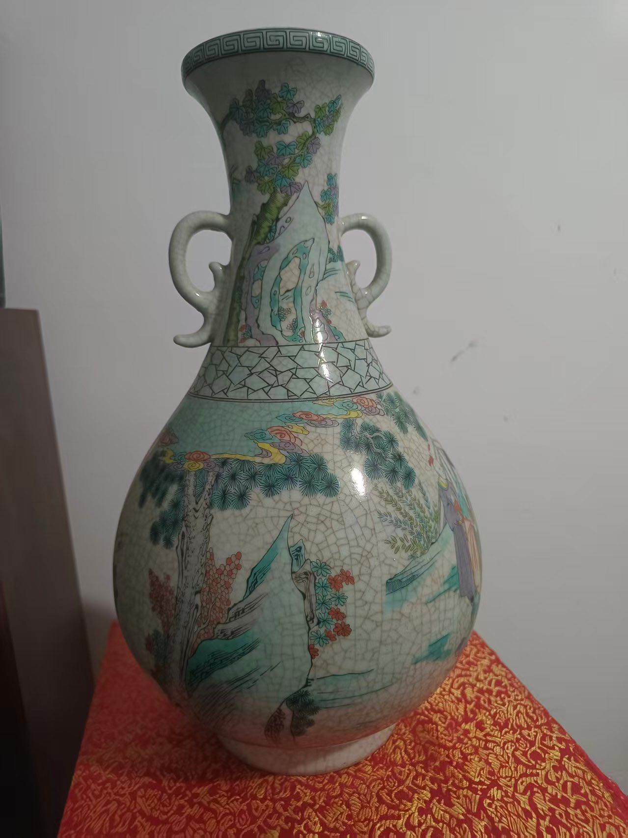 哥釉五彩人物纹双耳瓶