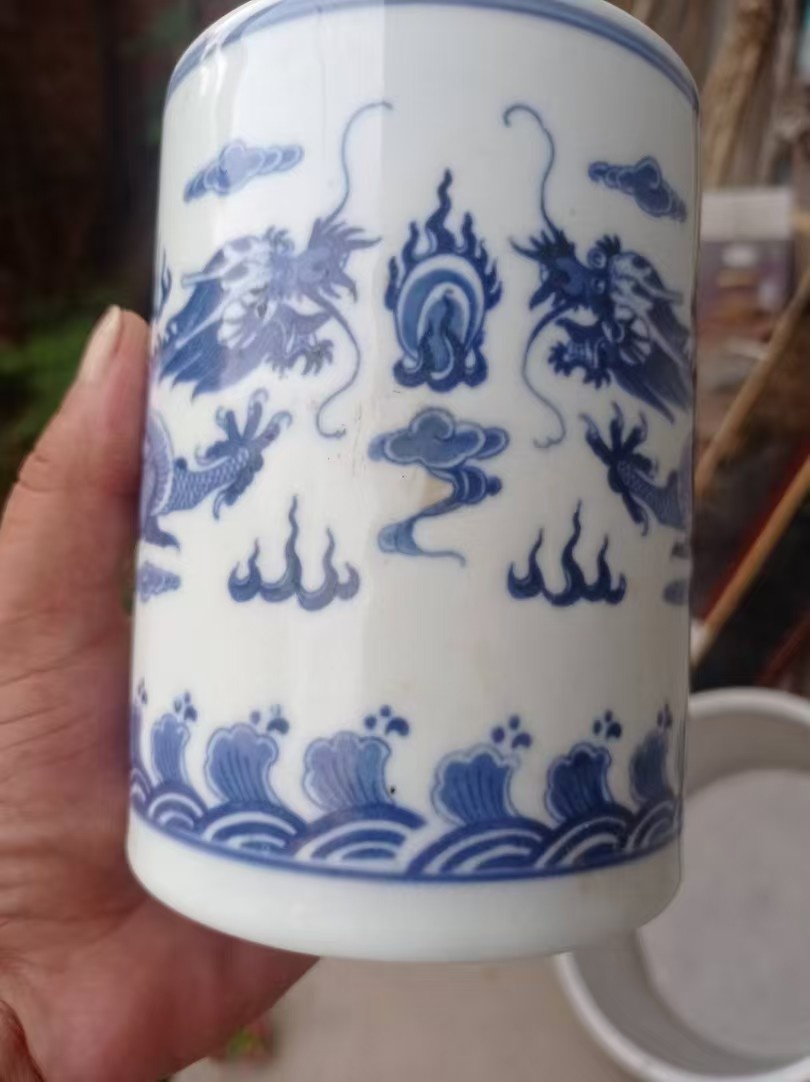 乾隆年制青花双龙笔筒