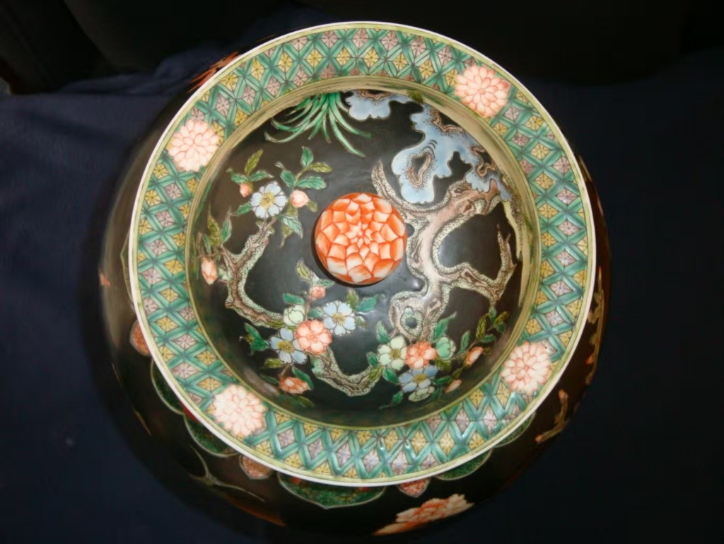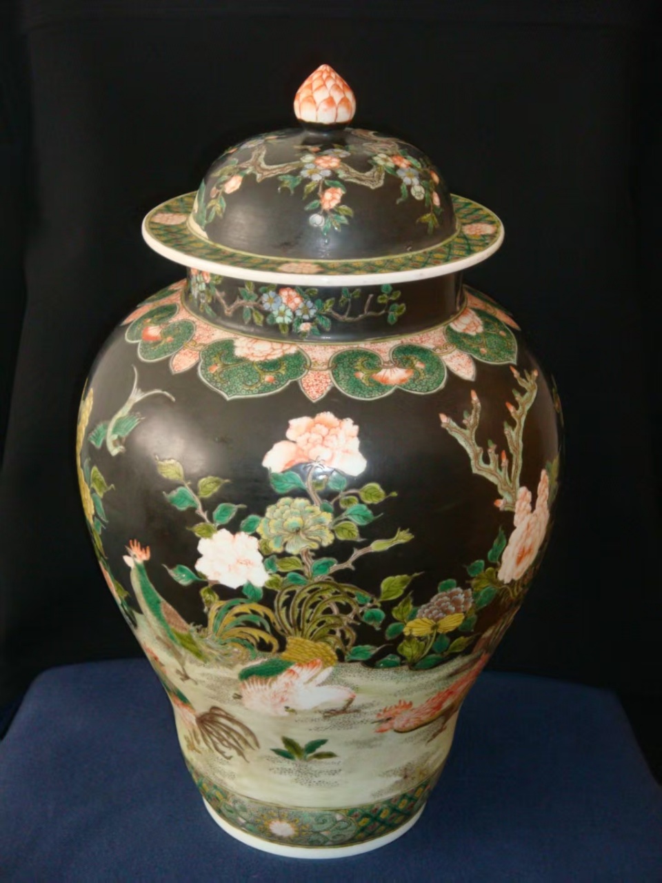 大清康熙墨地五彩将军罐