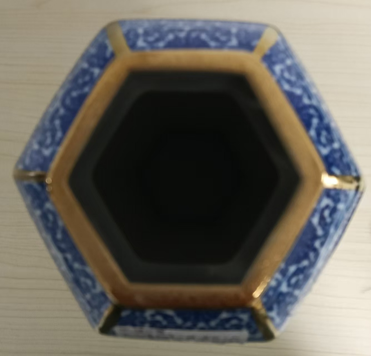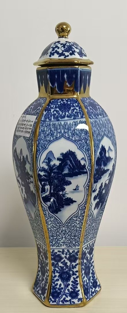 大清乾隆六棱青花山水纹描金将军罐