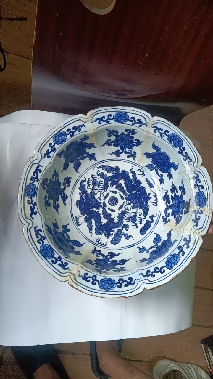 清代花口青花龙纹大盘
