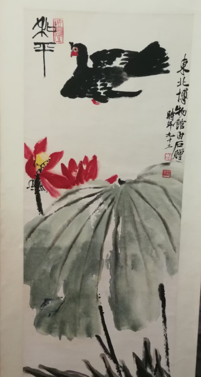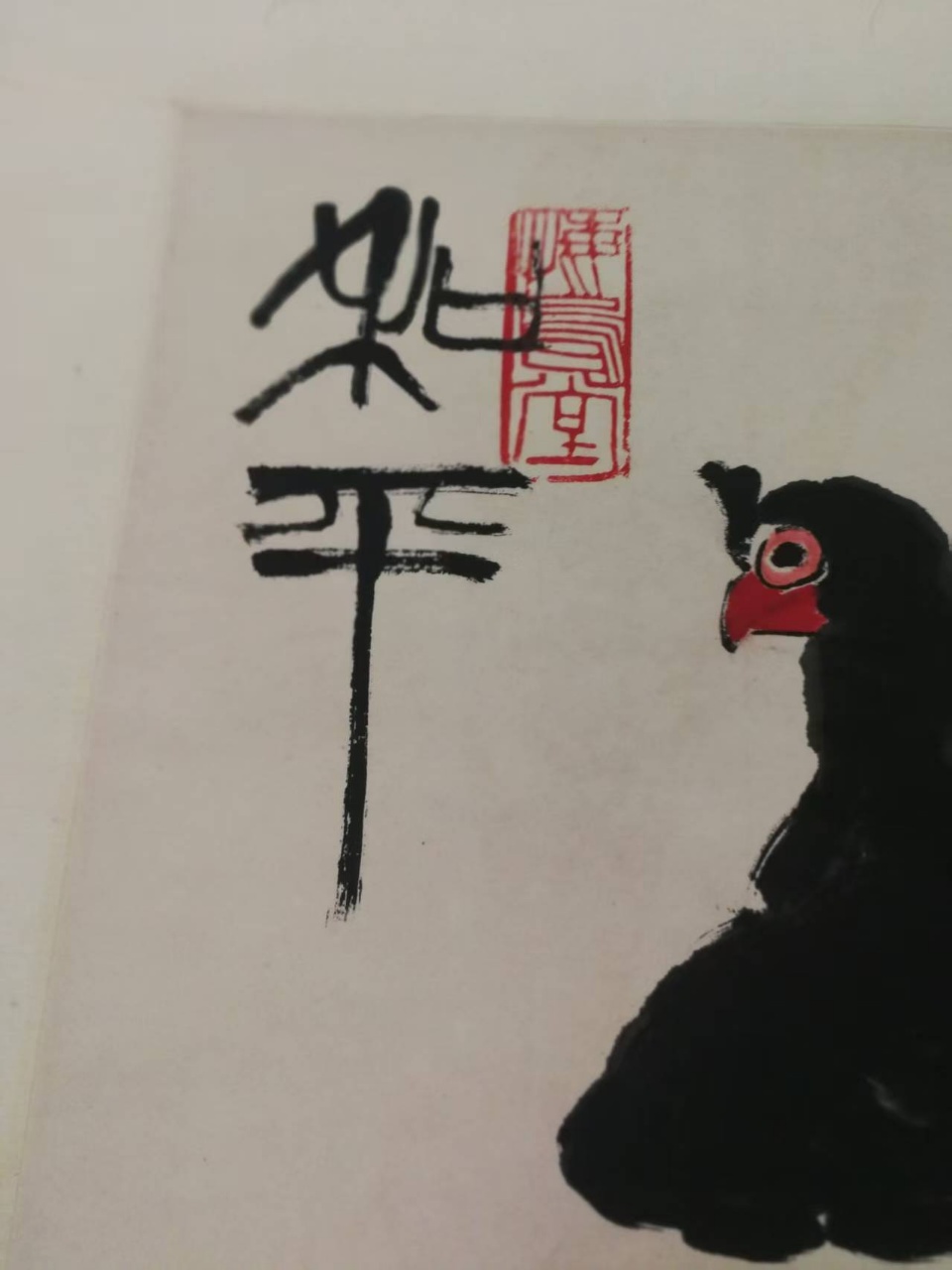 齐百石《和平鸽立轴》