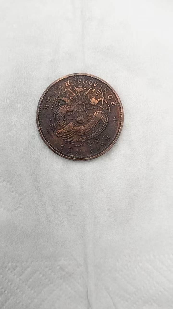 湖北省造光绪元宝五瓣花当十高满文圆嘴龙铜币
