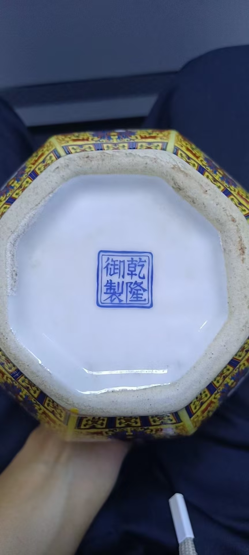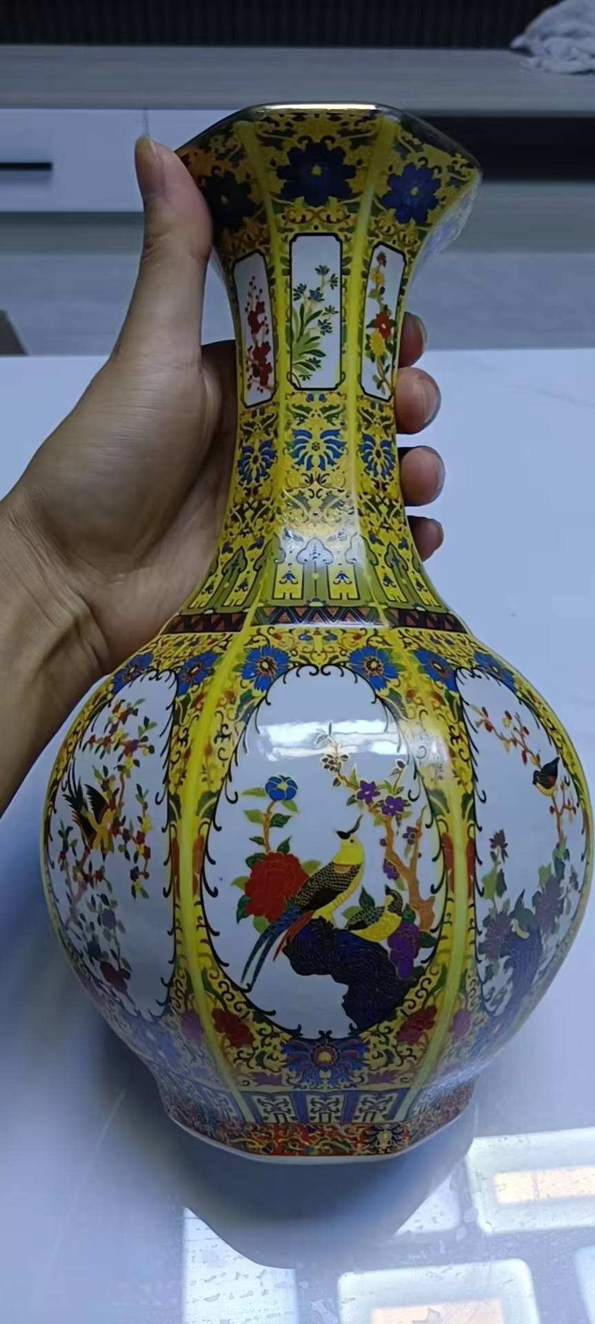 珐琅彩六方瓶!瓶身高28公分!瓶身直径15公分