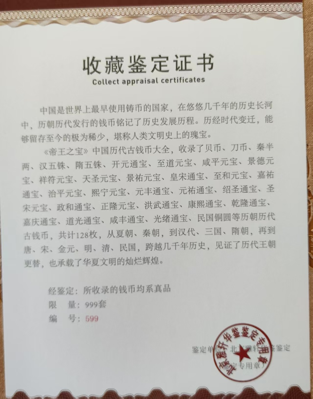 千年古钱币《帝王之宝》共128枚