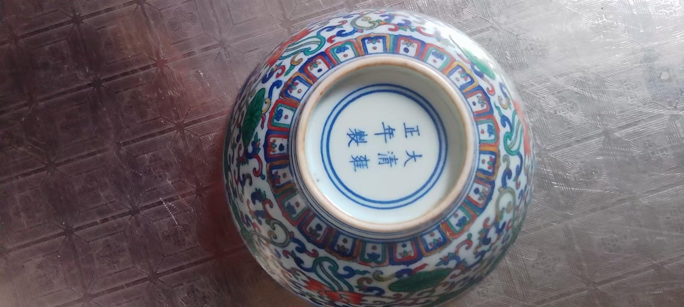 大清雍正年制桤书六字款,斗彩龙凤花绘纹碗
