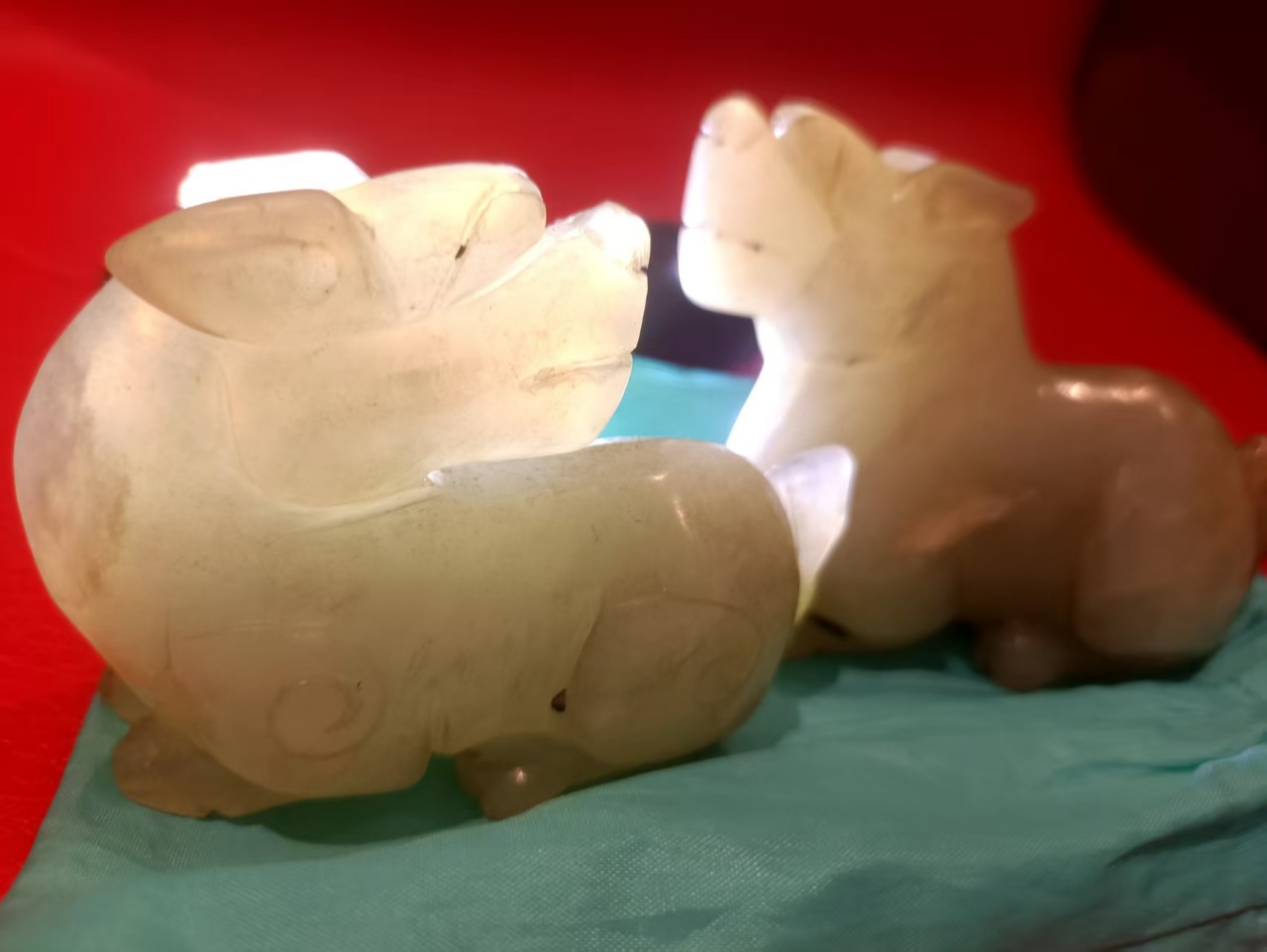 元代纯手工和田玉马一对