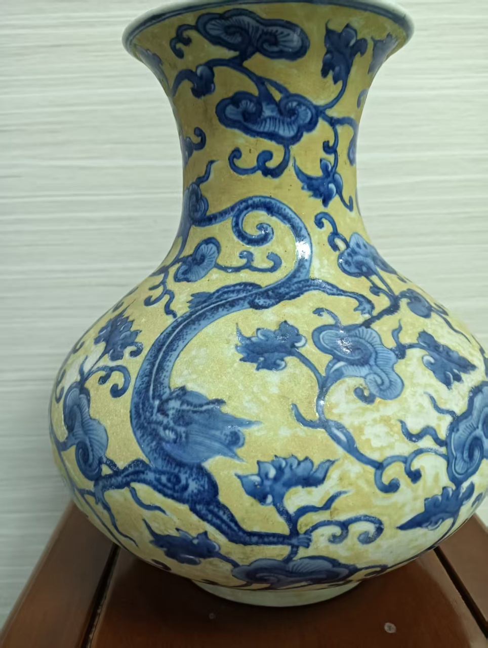 黄油青花缠枝连龙纹瓶