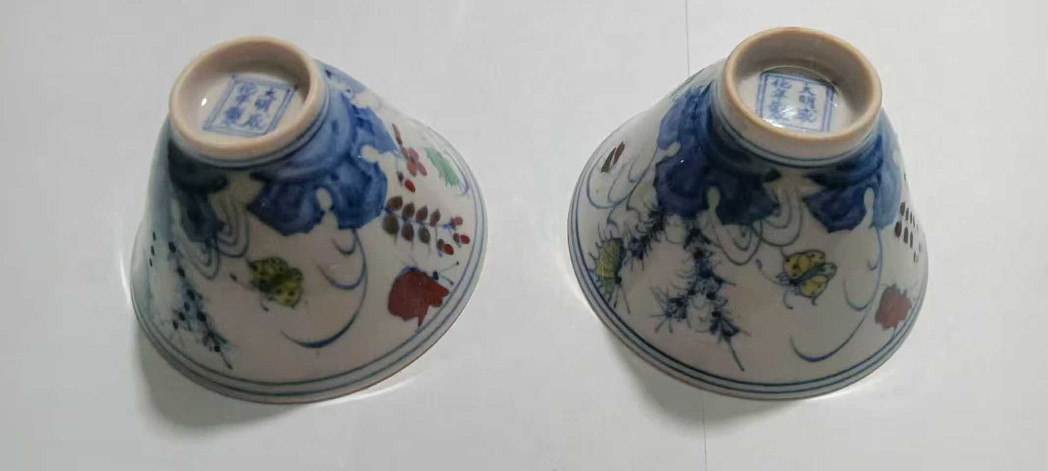 斗彩蝶纹斗笠杯75*50mm
