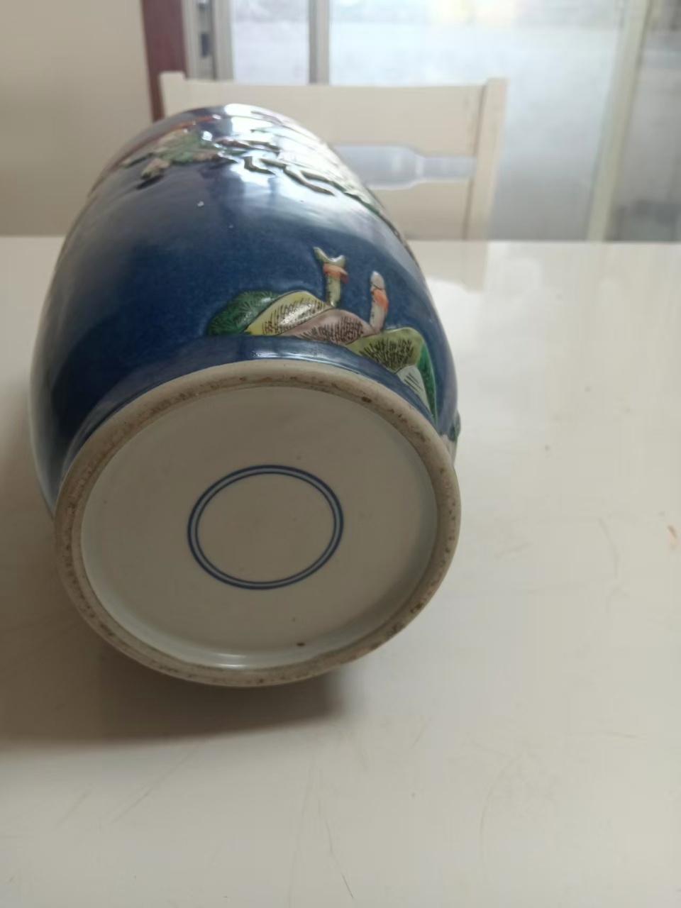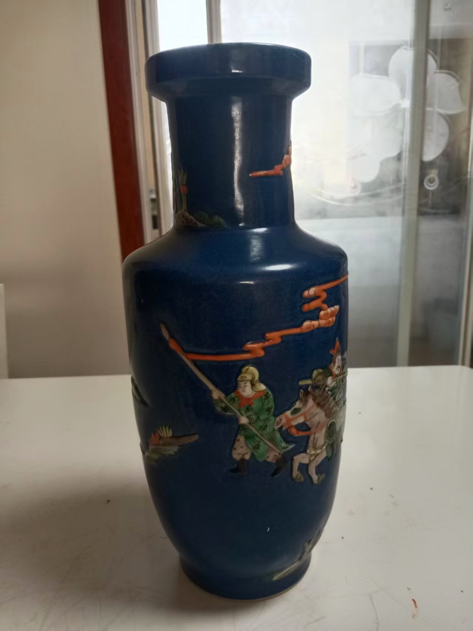 清康熙撒蓝油三国人物故事斗彩赏瓶