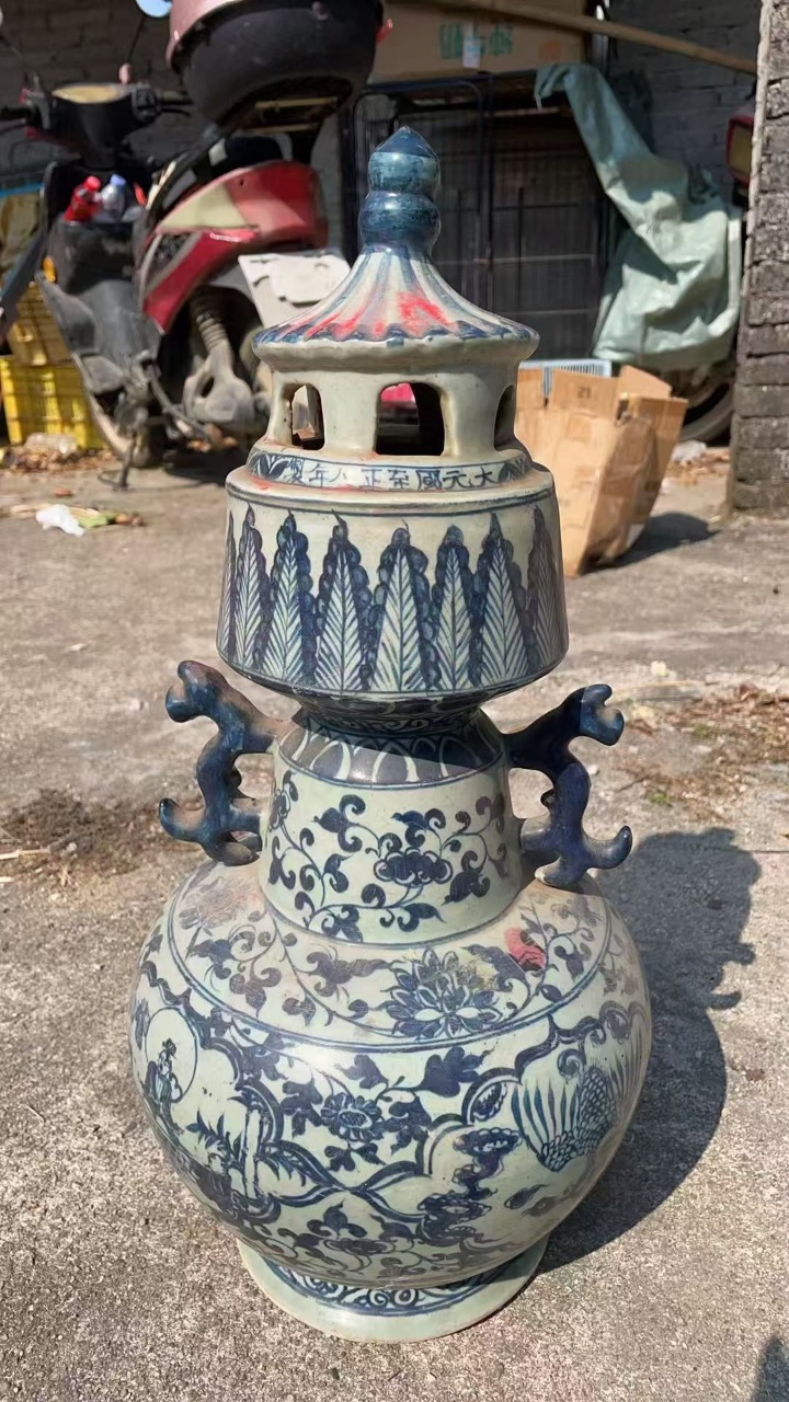 青花人物故事塔式炉