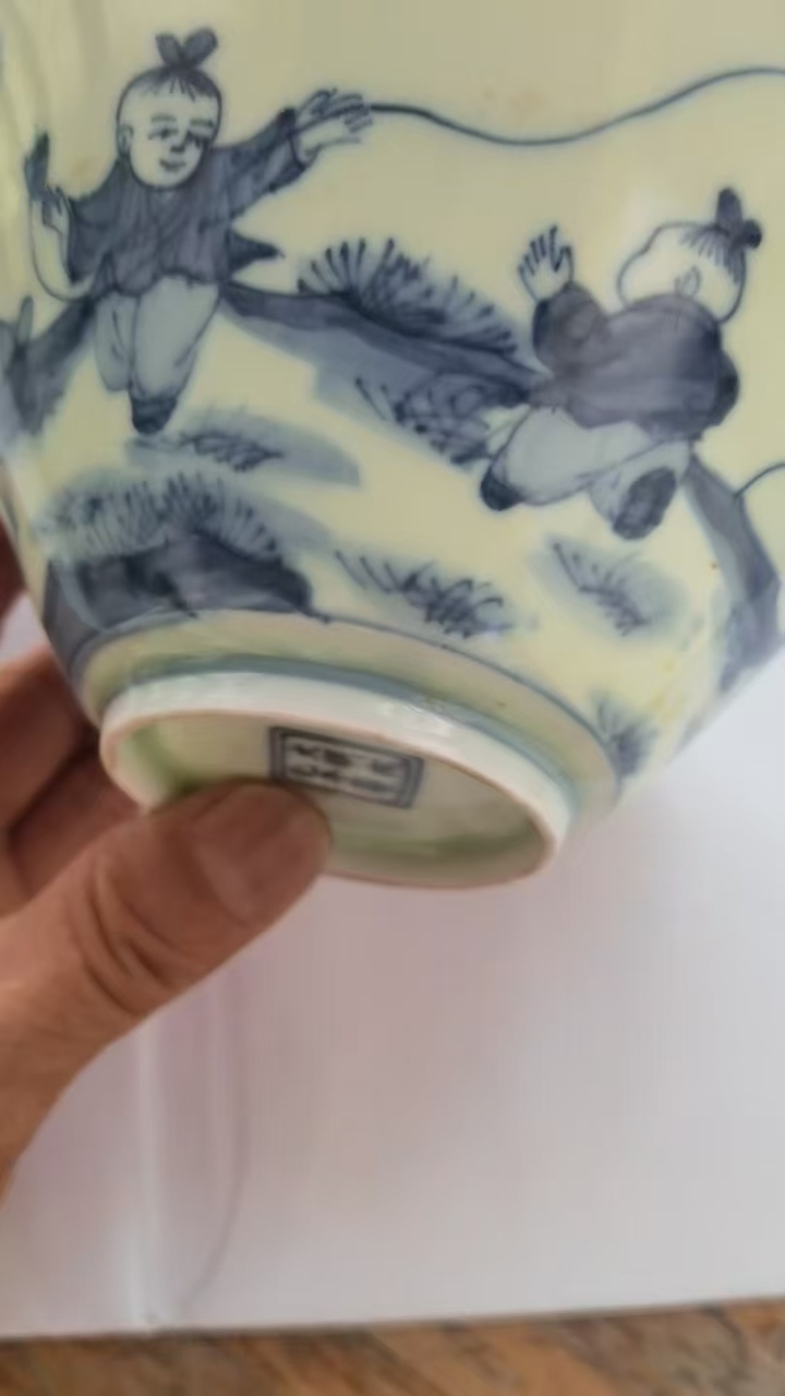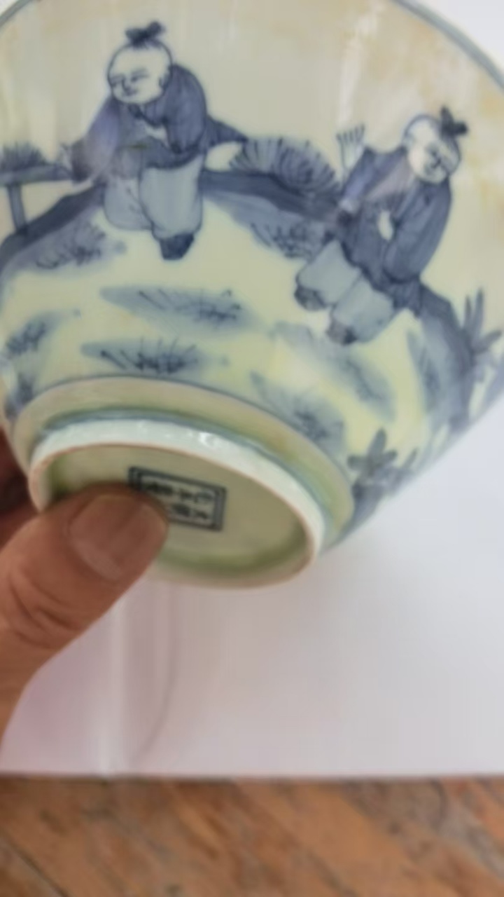 大明成化款婴戏孩儿斗笠碗